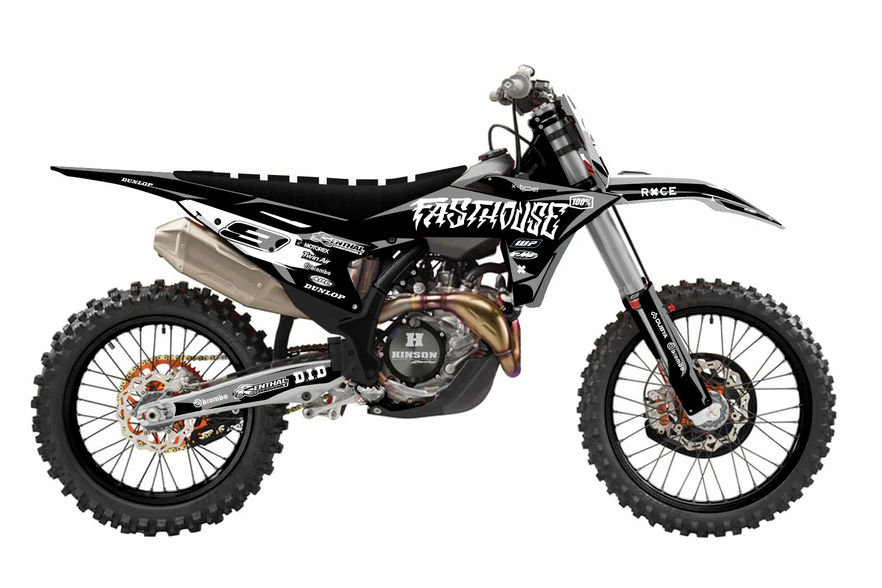 «fasthouse222» — готовый комплект графики серии Untucked для KTM MX Graphic Kit KTM SX-F 350 2025. В комплекте: графика на бак и боковые облицовки, крылья (переднее и заднее), передний щиток, номерные таблички, защита вилки. Материал: ПВХ-винил 80 мкр с холодной ламинацией 300 мкр, общая толщина 380 мкр; покрытие глянцевое или матовое на выбор. Устойчив к UV-излучению, воде, бензину и мойке высокого давления. Клей акриловый на сольвентной основе — постоянный, для гибких пластиков. На простых поверхностях монтируется без нагрева; для сложных изгибов рекомендуем фен. Этот пресет можно заказать как есть или взять за основу в конструкторе: поменять цвета, добавить стартовый номер и свой бренд. Производство — 3–5 рабочих дней, доставка по России СДЭКом или Почтой, по СНГ — курьерскими службами.