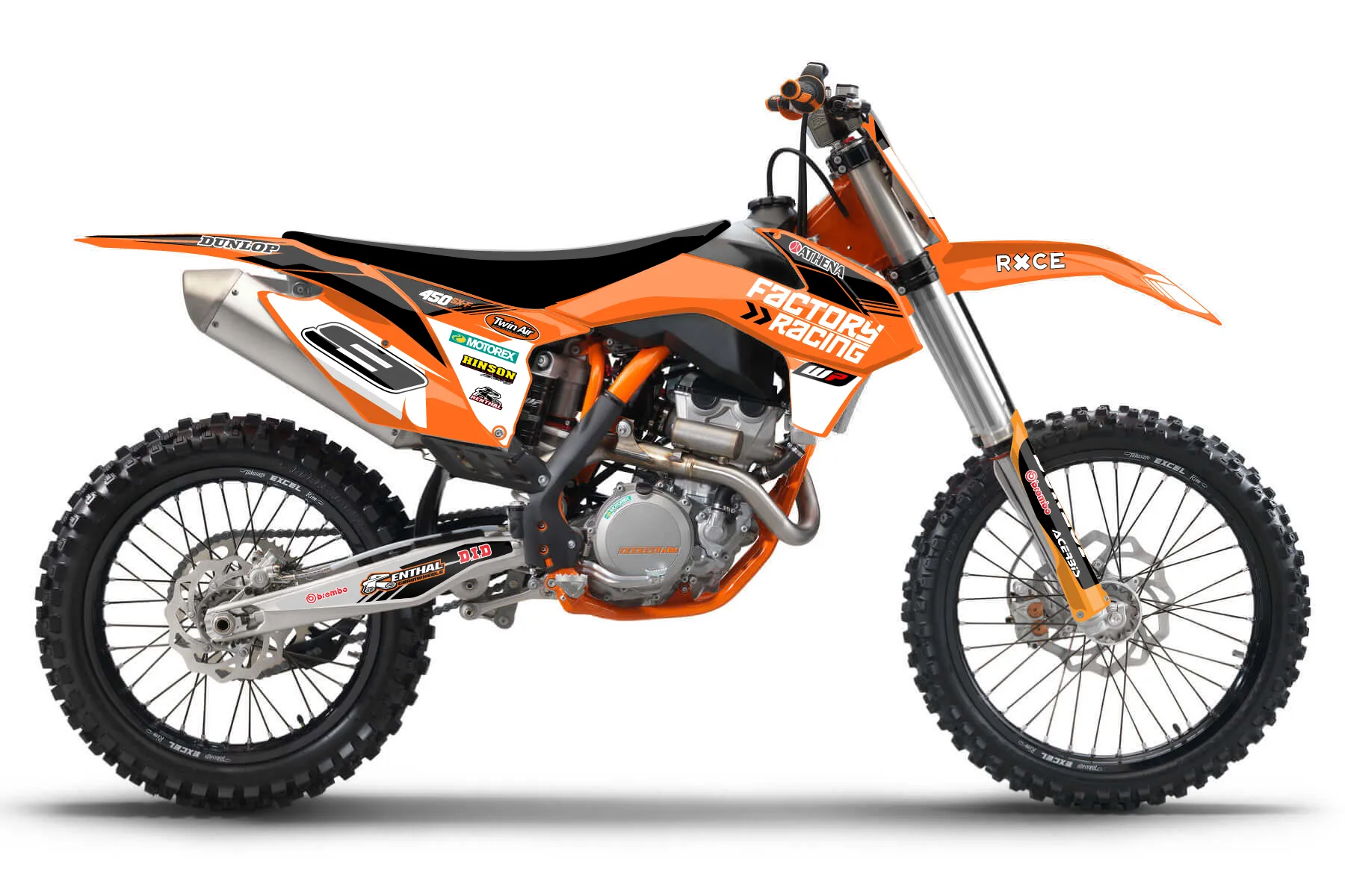 «Factory Basic» — готовый комплект графики серии Factory для KTM MX Graphic Kit KTM SX-F 450 2013. В комплекте: графика на бак и боковые облицовки, крылья (переднее и заднее), передний щиток, номерные таблички, защита вилки. Материал: ПВХ-винил 80 мкр с холодной ламинацией 300 мкр, общая толщина 380 мкр; покрытие глянцевое или матовое на выбор. Устойчив к UV-излучению, воде, бензину и мойке высокого давления. Клей акриловый на сольвентной основе — постоянный, для гибких пластиков. На простых поверхностях монтируется без нагрева; для сложных изгибов рекомендуем фен. Этот пресет можно заказать как есть или взять за основу в конструкторе: поменять цвета, добавить стартовый номер и свой бренд. Производство — 3–5 рабочих дней, доставка по России СДЭКом или Почтой, по СНГ — курьерскими службами.