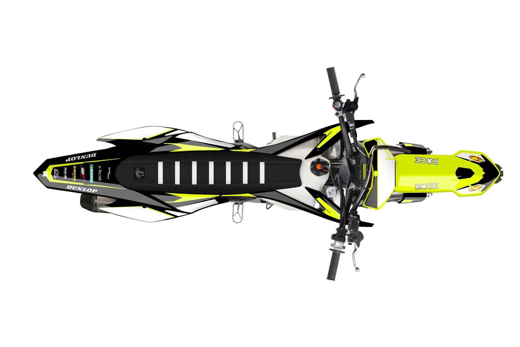 «Lucent Neon» — готовый комплект графики серии Flow для KTM MX Graphic Kit KTM SX-F 450 2013. В комплекте: графика на бак и боковые облицовки, крылья (переднее и заднее), передний щиток, номерные таблички, защита вилки. Материал: ПВХ-винил 80 мкр с холодной ламинацией 300 мкр, общая толщина 380 мкр; покрытие глянцевое или матовое на выбор. Устойчив к UV-излучению, воде, бензину и мойке высокого давления. Клей акриловый на сольвентной основе — постоянный, для гибких пластиков. На простых поверхностях монтируется без нагрева; для сложных изгибов рекомендуем фен. Этот пресет можно заказать как есть или взять за основу в конструкторе: поменять цвета, добавить стартовый номер и свой бренд. Производство — 3–5 рабочих дней, доставка по России СДЭКом или Почтой, по СНГ — курьерскими службами.