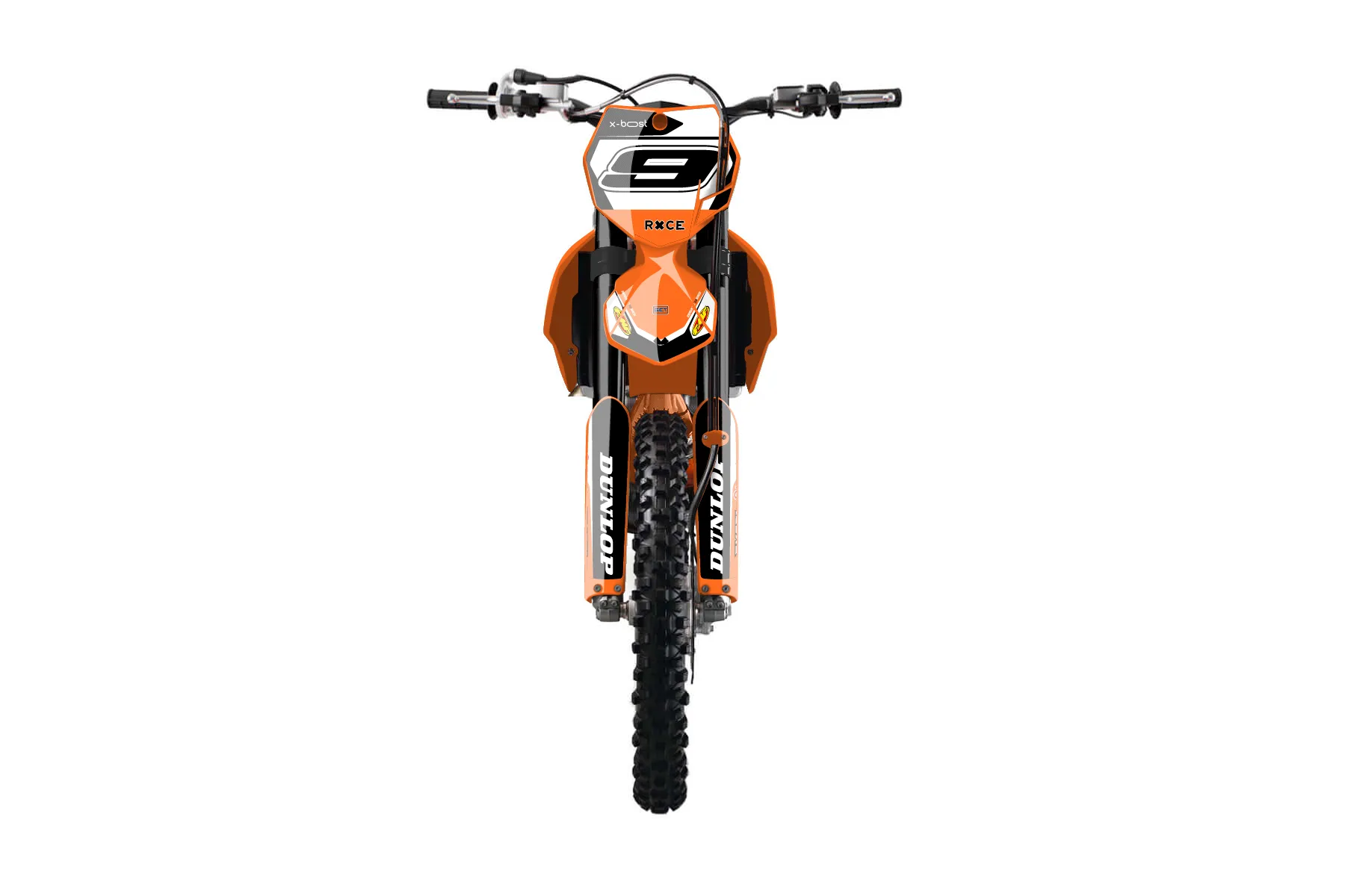 «Scrub» — готовый комплект графики серии Flow для KTM MX Graphic Kit KTM SX-F 450 2013. В комплекте: графика на бак и боковые облицовки, крылья (переднее и заднее), передний щиток, номерные таблички, защита вилки. Материал: ПВХ-винил 80 мкр с холодной ламинацией 300 мкр, общая толщина 380 мкр; покрытие глянцевое или матовое на выбор. Устойчив к UV-излучению, воде, бензину и мойке высокого давления. Клей акриловый на сольвентной основе — постоянный, для гибких пластиков. На простых поверхностях монтируется без нагрева; для сложных изгибов рекомендуем фен. Этот пресет можно заказать как есть или взять за основу в конструкторе: поменять цвета, добавить стартовый номер и свой бренд. Производство — 3–5 рабочих дней, доставка по России СДЭКом или Почтой, по СНГ — курьерскими службами.