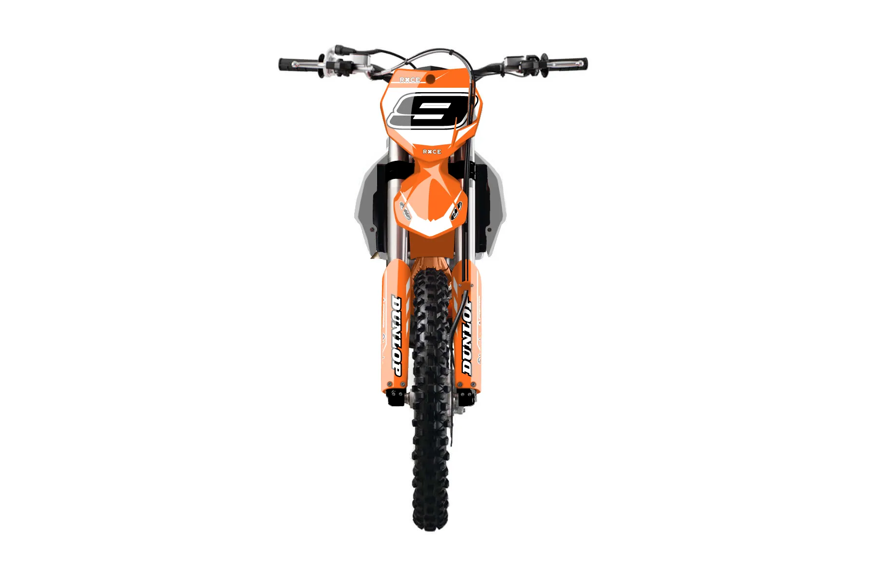 «Bones» — готовый комплект графики серии Maverick для KTM MX Graphic Kit KTM SX-F 450 2013. В комплекте: графика на бак и боковые облицовки, крылья (переднее и заднее), передний щиток, номерные таблички, защита вилки. Материал: ПВХ-винил 80 мкр с холодной ламинацией 300 мкр, общая толщина 380 мкр; покрытие глянцевое или матовое на выбор. Устойчив к UV-излучению, воде, бензину и мойке высокого давления. Клей акриловый на сольвентной основе — постоянный, для гибких пластиков. На простых поверхностях монтируется без нагрева; для сложных изгибов рекомендуем фен. Этот пресет можно заказать как есть или взять за основу в конструкторе: поменять цвета, добавить стартовый номер и свой бренд. Производство — 3–5 рабочих дней, доставка по России СДЭКом или Почтой, по СНГ — курьерскими службами.