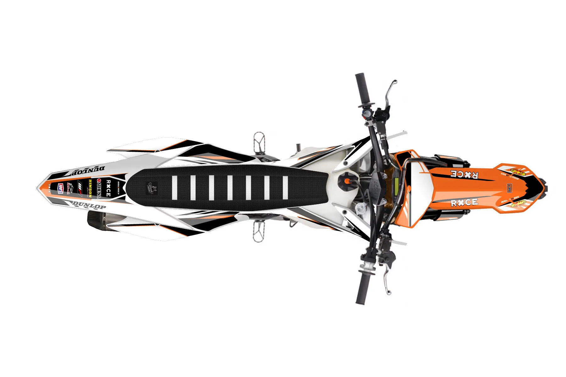 «Club» — готовый комплект графики серии Maverick для KTM MX Graphic Kit KTM SX-F 450 2013. В комплекте: графика на бак и боковые облицовки, крылья (переднее и заднее), передний щиток, номерные таблички, защита вилки. Материал: ПВХ-винил 80 мкр с холодной ламинацией 300 мкр, общая толщина 380 мкр; покрытие глянцевое или матовое на выбор. Устойчив к UV-излучению, воде, бензину и мойке высокого давления. Клей акриловый на сольвентной основе — постоянный, для гибких пластиков. На простых поверхностях монтируется без нагрева; для сложных изгибов рекомендуем фен. Этот пресет можно заказать как есть или взять за основу в конструкторе: поменять цвета, добавить стартовый номер и свой бренд. Производство — 3–5 рабочих дней, доставка по России СДЭКом или Почтой, по СНГ — курьерскими службами.