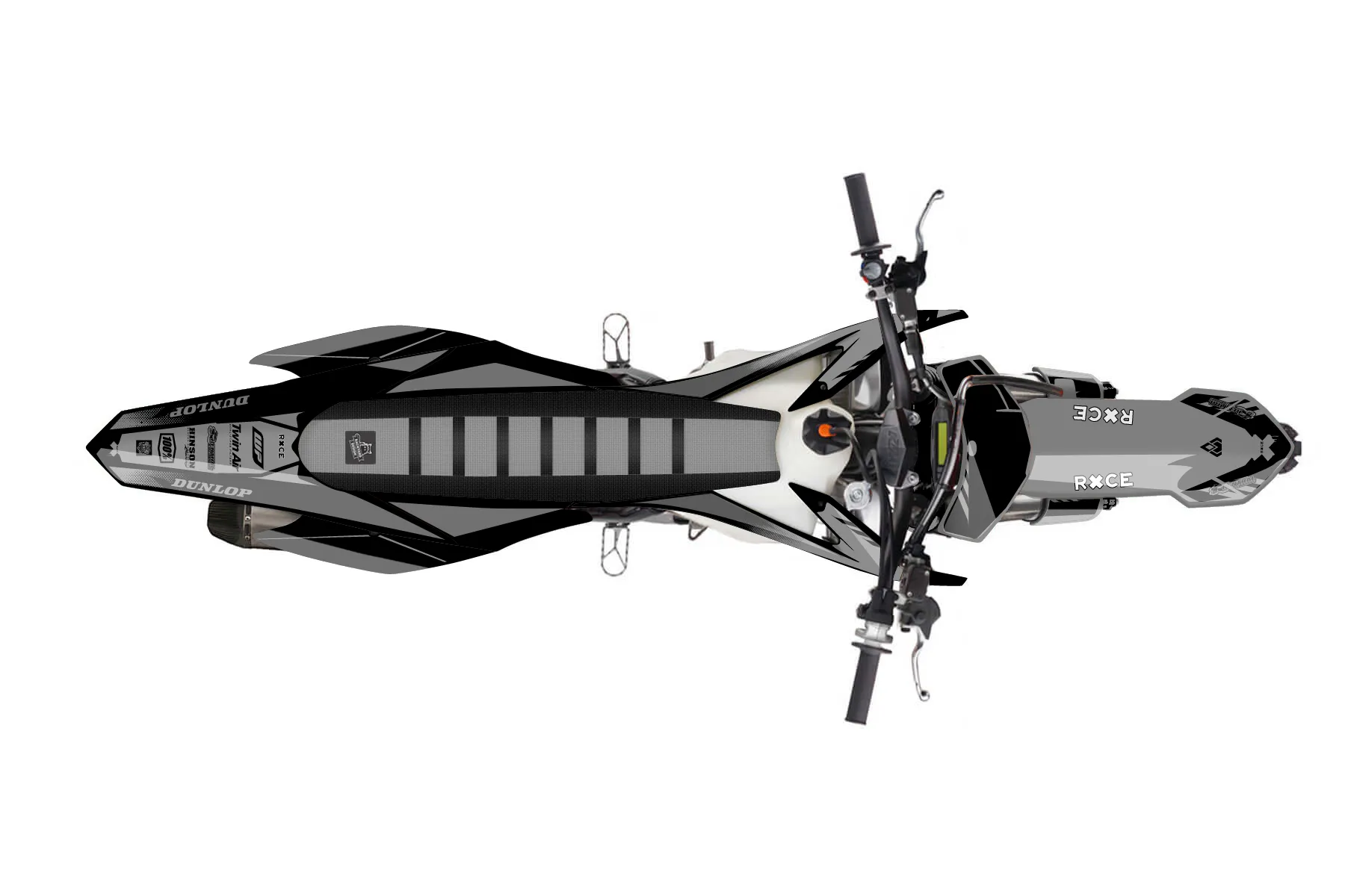 «Grip» — готовый комплект графики серии Maverick для KTM MX Graphic Kit KTM SX-F 450 2013. В комплекте: графика на бак и боковые облицовки, крылья (переднее и заднее), передний щиток, номерные таблички, защита вилки. Материал: ПВХ-винил 80 мкр с холодной ламинацией 300 мкр, общая толщина 380 мкр; покрытие глянцевое или матовое на выбор. Устойчив к UV-излучению, воде, бензину и мойке высокого давления. Клей акриловый на сольвентной основе — постоянный, для гибких пластиков. На простых поверхностях монтируется без нагрева; для сложных изгибов рекомендуем фен. Этот пресет можно заказать как есть или взять за основу в конструкторе: поменять цвета, добавить стартовый номер и свой бренд. Производство — 3–5 рабочих дней, доставка по России СДЭКом или Почтой, по СНГ — курьерскими службами.
