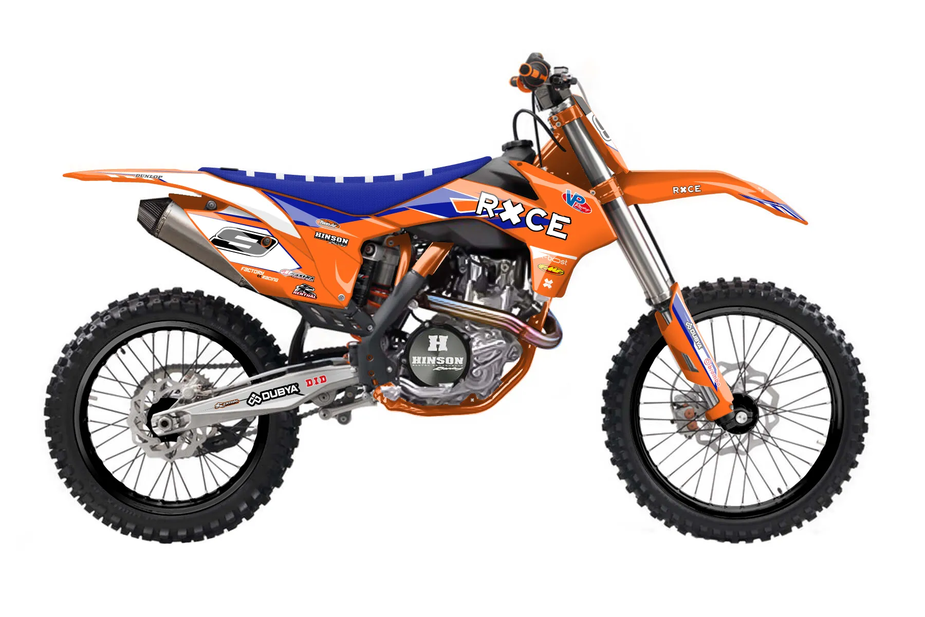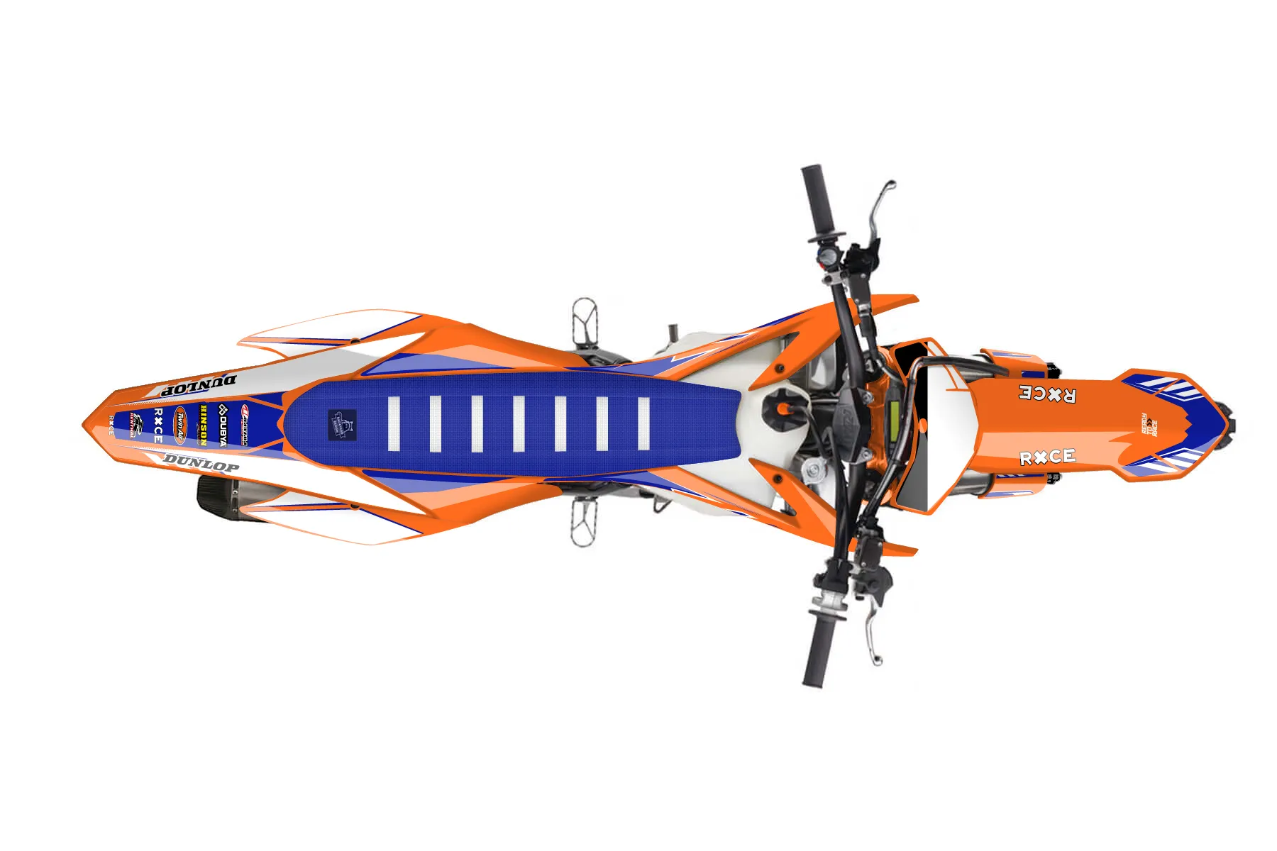 «Showtime» — готовый комплект графики серии Maverick для KTM MX Graphic Kit KTM SX-F 450 2013. В комплекте: графика на бак и боковые облицовки, крылья (переднее и заднее), передний щиток, номерные таблички, защита вилки. Материал: ПВХ-винил 80 мкр с холодной ламинацией 300 мкр, общая толщина 380 мкр; покрытие глянцевое или матовое на выбор. Устойчив к UV-излучению, воде, бензину и мойке высокого давления. Клей акриловый на сольвентной основе — постоянный, для гибких пластиков. На простых поверхностях монтируется без нагрева; для сложных изгибов рекомендуем фен. Этот пресет можно заказать как есть или взять за основу в конструкторе: поменять цвета, добавить стартовый номер и свой бренд. Производство — 3–5 рабочих дней, доставка по России СДЭКом или Почтой, по СНГ — курьерскими службами.