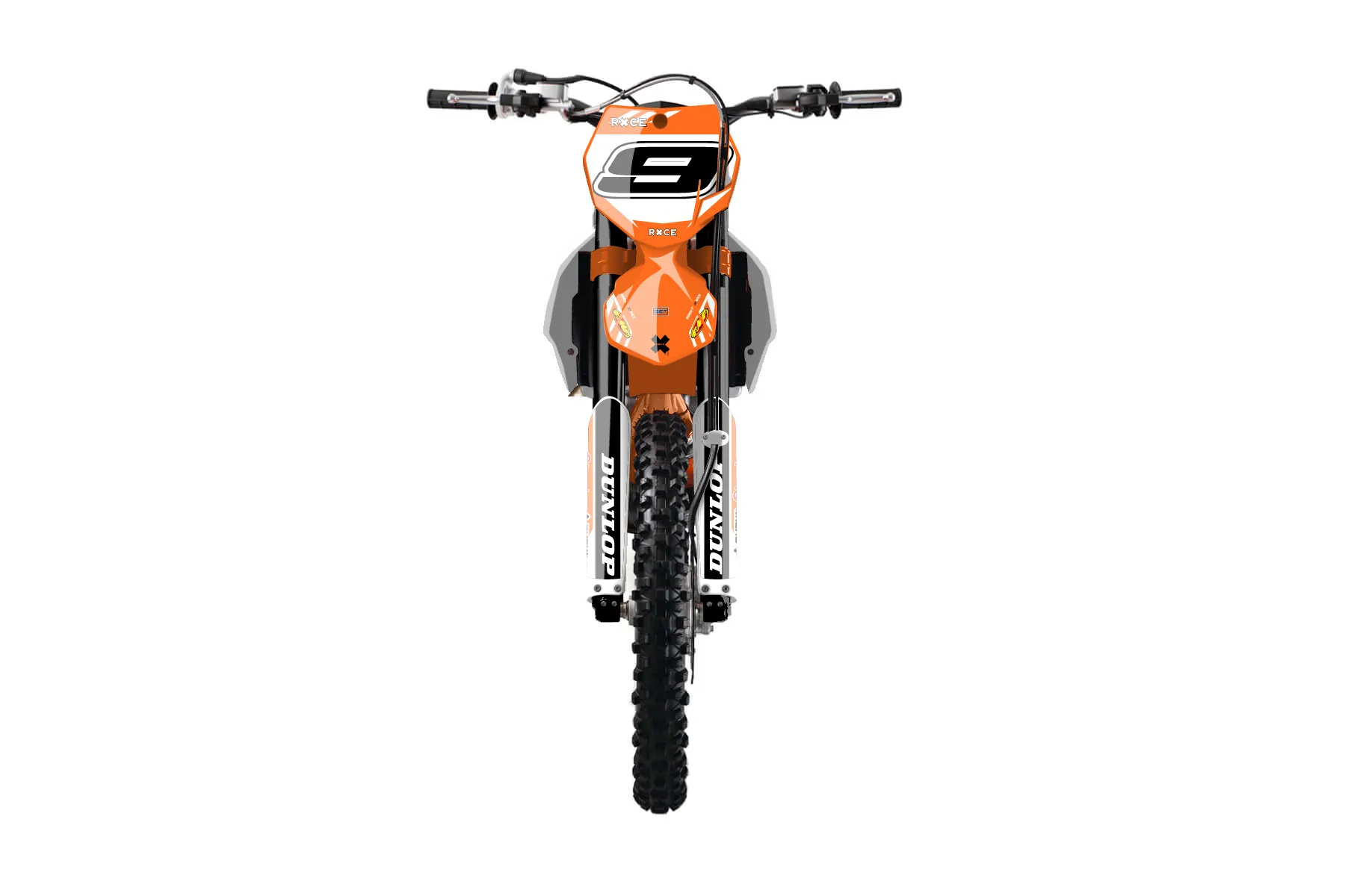 «Swapp» — готовый комплект графики серии Maverick для KTM MX Graphic Kit KTM SX-F 450 2013. В комплекте: графика на бак и боковые облицовки, крылья (переднее и заднее), передний щиток, номерные таблички, защита вилки. Материал: ПВХ-винил 80 мкр с холодной ламинацией 300 мкр, общая толщина 380 мкр; покрытие глянцевое или матовое на выбор. Устойчив к UV-излучению, воде, бензину и мойке высокого давления. Клей акриловый на сольвентной основе — постоянный, для гибких пластиков. На простых поверхностях монтируется без нагрева; для сложных изгибов рекомендуем фен. Этот пресет можно заказать как есть или взять за основу в конструкторе: поменять цвета, добавить стартовый номер и свой бренд. Производство — 3–5 рабочих дней, доставка по России СДЭКом или Почтой, по СНГ — курьерскими службами.