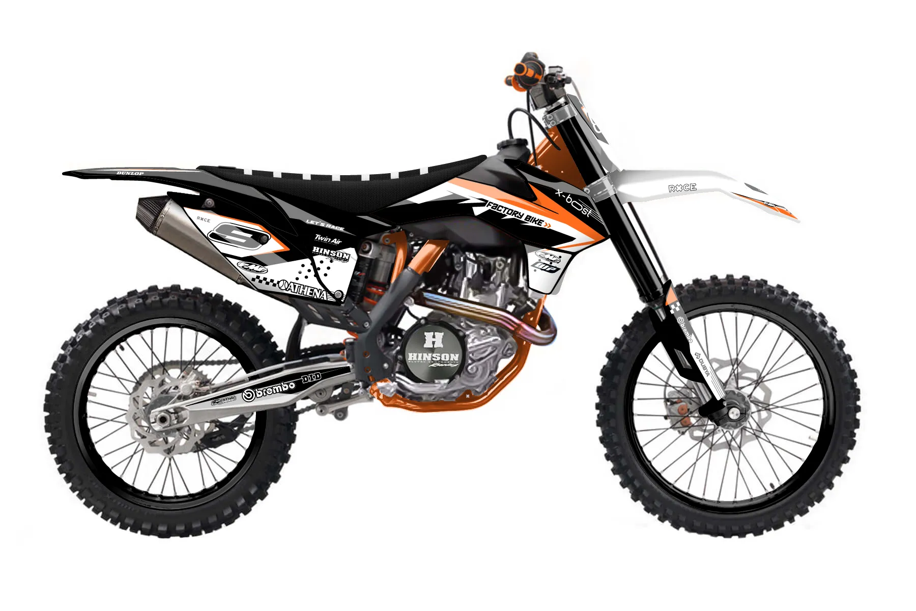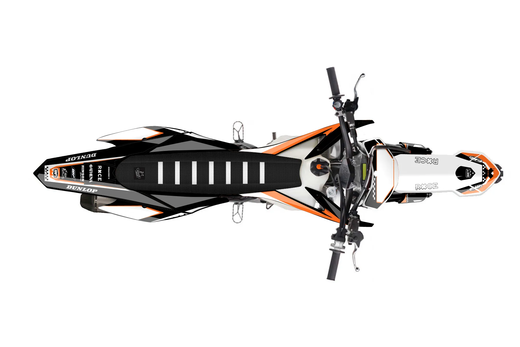 «Chef» — готовый комплект графики серии Staple для KTM MX Graphic Kit KTM SX-F 450 2013. В комплекте: графика на бак и боковые облицовки, крылья (переднее и заднее), передний щиток, номерные таблички, защита вилки. Материал: ПВХ-винил 80 мкр с холодной ламинацией 300 мкр, общая толщина 380 мкр; покрытие глянцевое или матовое на выбор. Устойчив к UV-излучению, воде, бензину и мойке высокого давления. Клей акриловый на сольвентной основе — постоянный, для гибких пластиков. На простых поверхностях монтируется без нагрева; для сложных изгибов рекомендуем фен. Этот пресет можно заказать как есть или взять за основу в конструкторе: поменять цвета, добавить стартовый номер и свой бренд. Производство — 3–5 рабочих дней, доставка по России СДЭКом или Почтой, по СНГ — курьерскими службами.