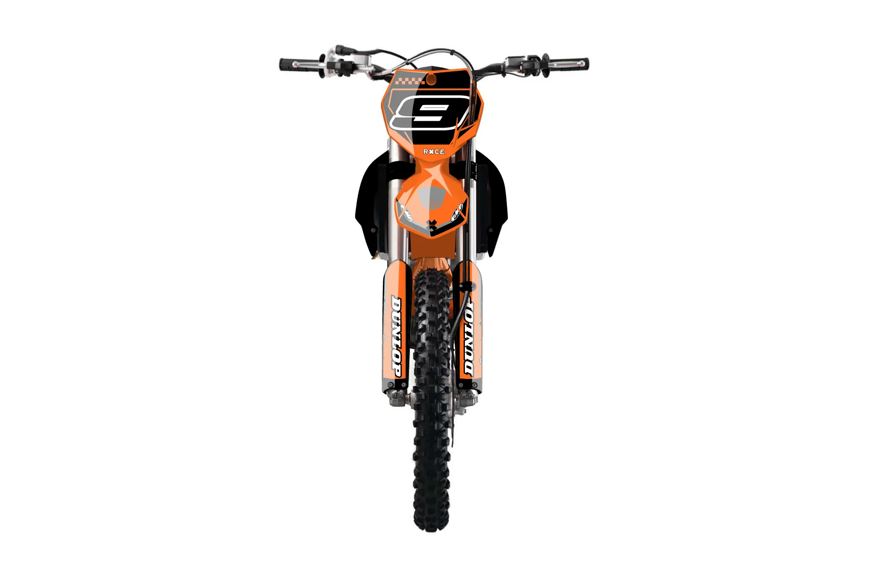 «Media» — готовый комплект графики серии Staple для KTM MX Graphic Kit KTM SX-F 450 2013. В комплекте: графика на бак и боковые облицовки, крылья (переднее и заднее), передний щиток, номерные таблички, защита вилки. Материал: ПВХ-винил 80 мкр с холодной ламинацией 300 мкр, общая толщина 380 мкр; покрытие глянцевое или матовое на выбор. Устойчив к UV-излучению, воде, бензину и мойке высокого давления. Клей акриловый на сольвентной основе — постоянный, для гибких пластиков. На простых поверхностях монтируется без нагрева; для сложных изгибов рекомендуем фен. Этот пресет можно заказать как есть или взять за основу в конструкторе: поменять цвета, добавить стартовый номер и свой бренд. Производство — 3–5 рабочих дней, доставка по России СДЭКом или Почтой, по СНГ — курьерскими службами.