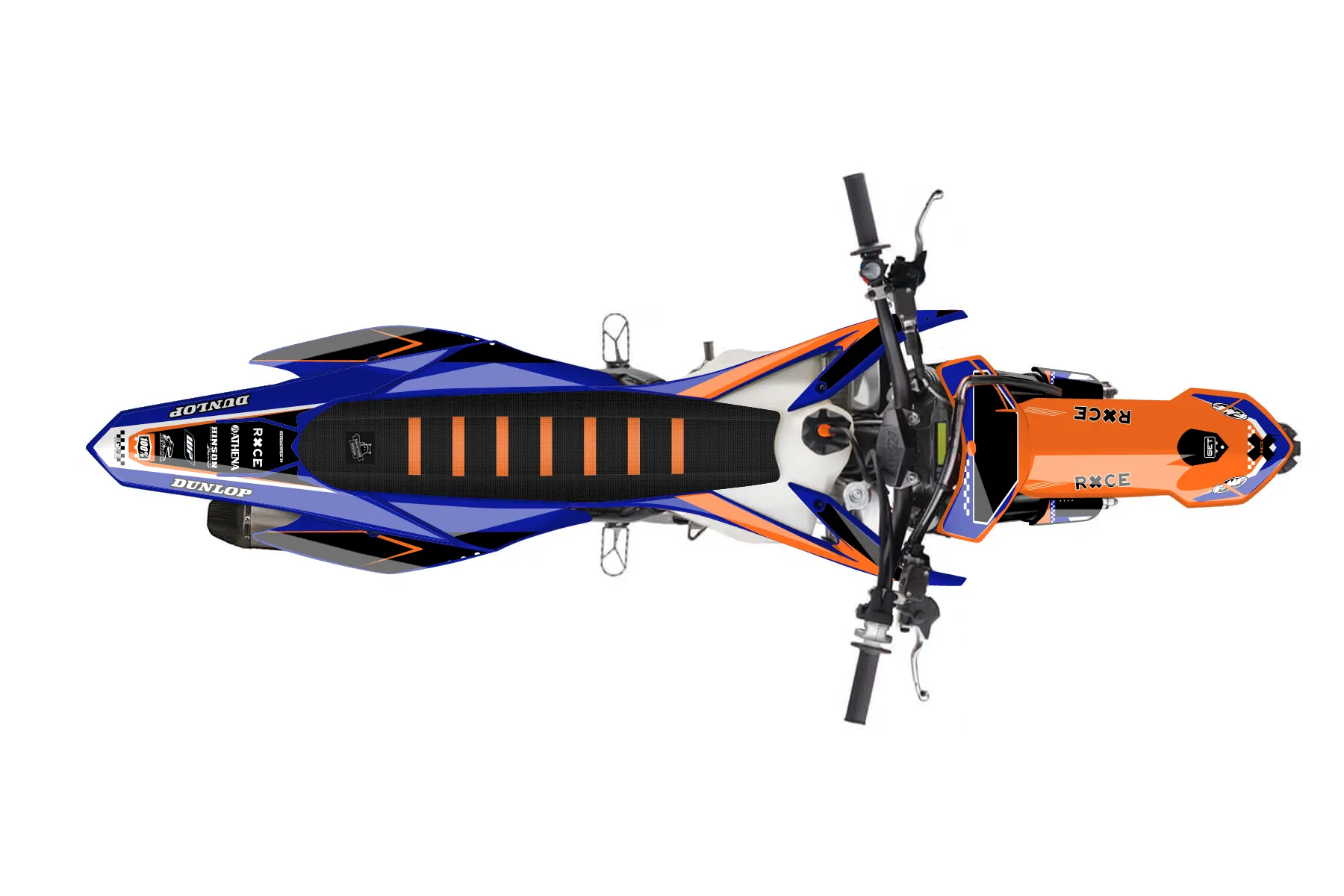 «New Era» — готовый комплект графики серии Staple для KTM MX Graphic Kit KTM SX-F 450 2013. В комплекте: графика на бак и боковые облицовки, крылья (переднее и заднее), передний щиток, номерные таблички, защита вилки. Материал: ПВХ-винил 80 мкр с холодной ламинацией 300 мкр, общая толщина 380 мкр; покрытие глянцевое или матовое на выбор. Устойчив к UV-излучению, воде, бензину и мойке высокого давления. Клей акриловый на сольвентной основе — постоянный, для гибких пластиков. На простых поверхностях монтируется без нагрева; для сложных изгибов рекомендуем фен. Этот пресет можно заказать как есть или взять за основу в конструкторе: поменять цвета, добавить стартовый номер и свой бренд. Производство — 3–5 рабочих дней, доставка по России СДЭКом или Почтой, по СНГ — курьерскими службами.