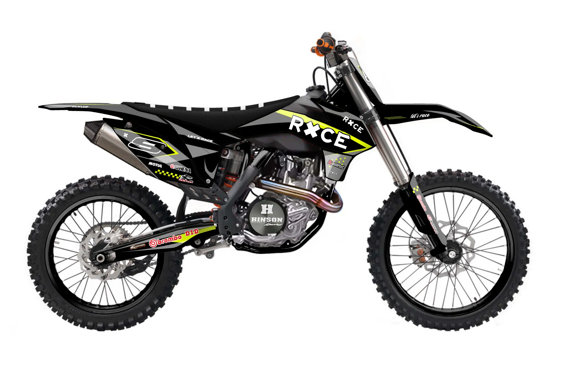 «Refuse Neon» — готовый комплект графики серии Staple для KTM MX Graphic Kit KTM SX-F 450 2013. В комплекте: графика на бак и боковые облицовки, крылья (переднее и заднее), передний щиток, номерные таблички, защита вилки. Материал: ПВХ-винил 80 мкр с холодной ламинацией 300 мкр, общая толщина 380 мкр; покрытие глянцевое или матовое на выбор. Устойчив к UV-излучению, воде, бензину и мойке высокого давления. Клей акриловый на сольвентной основе — постоянный, для гибких пластиков. На простых поверхностях монтируется без нагрева; для сложных изгибов рекомендуем фен. Этот пресет можно заказать как есть или взять за основу в конструкторе: поменять цвета, добавить стартовый номер и свой бренд. Производство — 3–5 рабочих дней, доставка по России СДЭКом или Почтой, по СНГ — курьерскими службами.