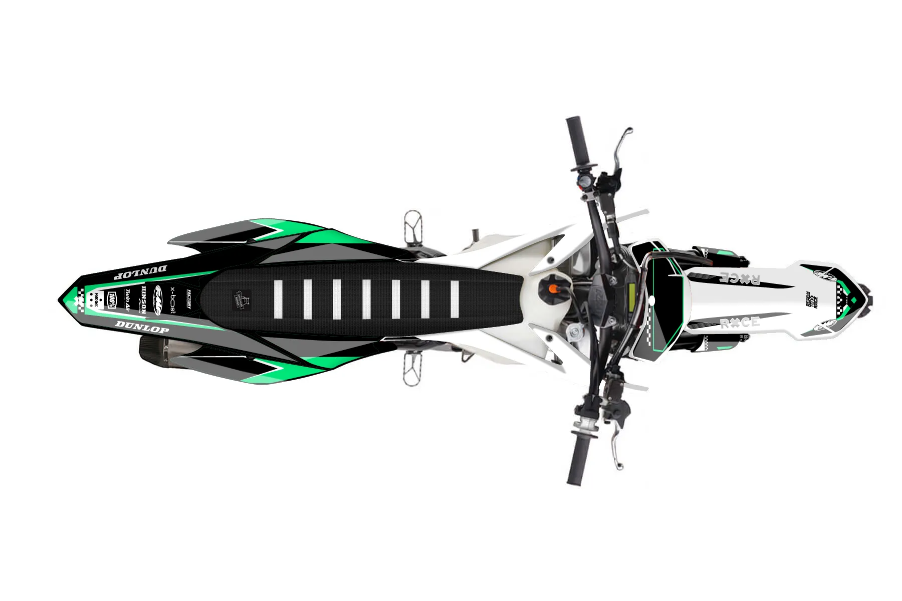«Supervision» — готовый комплект графики серии Staple для KTM MX Graphic Kit KTM SX-F 450 2013. В комплекте: графика на бак и боковые облицовки, крылья (переднее и заднее), передний щиток, номерные таблички, защита вилки. Материал: ПВХ-винил 80 мкр с холодной ламинацией 300 мкр, общая толщина 380 мкр; покрытие глянцевое или матовое на выбор. Устойчив к UV-излучению, воде, бензину и мойке высокого давления. Клей акриловый на сольвентной основе — постоянный, для гибких пластиков. На простых поверхностях монтируется без нагрева; для сложных изгибов рекомендуем фен. Этот пресет можно заказать как есть или взять за основу в конструкторе: поменять цвета, добавить стартовый номер и свой бренд. Производство — 3–5 рабочих дней, доставка по России СДЭКом или Почтой, по СНГ — курьерскими службами.