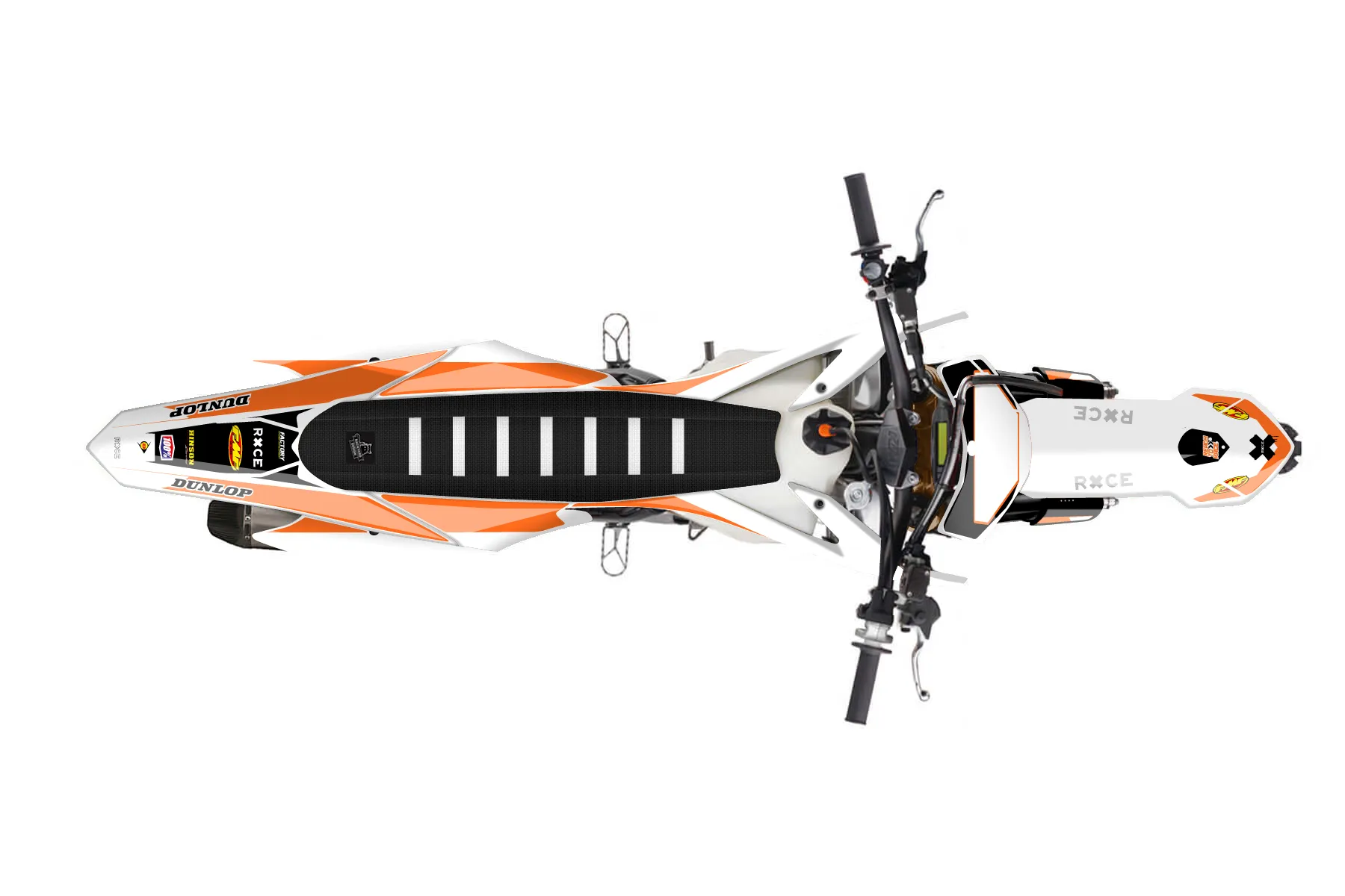 «Tilled» — готовый комплект графики серии Staple для KTM MX Graphic Kit KTM SX-F 450 2013. В комплекте: графика на бак и боковые облицовки, крылья (переднее и заднее), передний щиток, номерные таблички, защита вилки. Материал: ПВХ-винил 80 мкр с холодной ламинацией 300 мкр, общая толщина 380 мкр; покрытие глянцевое или матовое на выбор. Устойчив к UV-излучению, воде, бензину и мойке высокого давления. Клей акриловый на сольвентной основе — постоянный, для гибких пластиков. На простых поверхностях монтируется без нагрева; для сложных изгибов рекомендуем фен. Этот пресет можно заказать как есть или взять за основу в конструкторе: поменять цвета, добавить стартовый номер и свой бренд. Производство — 3–5 рабочих дней, доставка по России СДЭКом или Почтой, по СНГ — курьерскими службами.