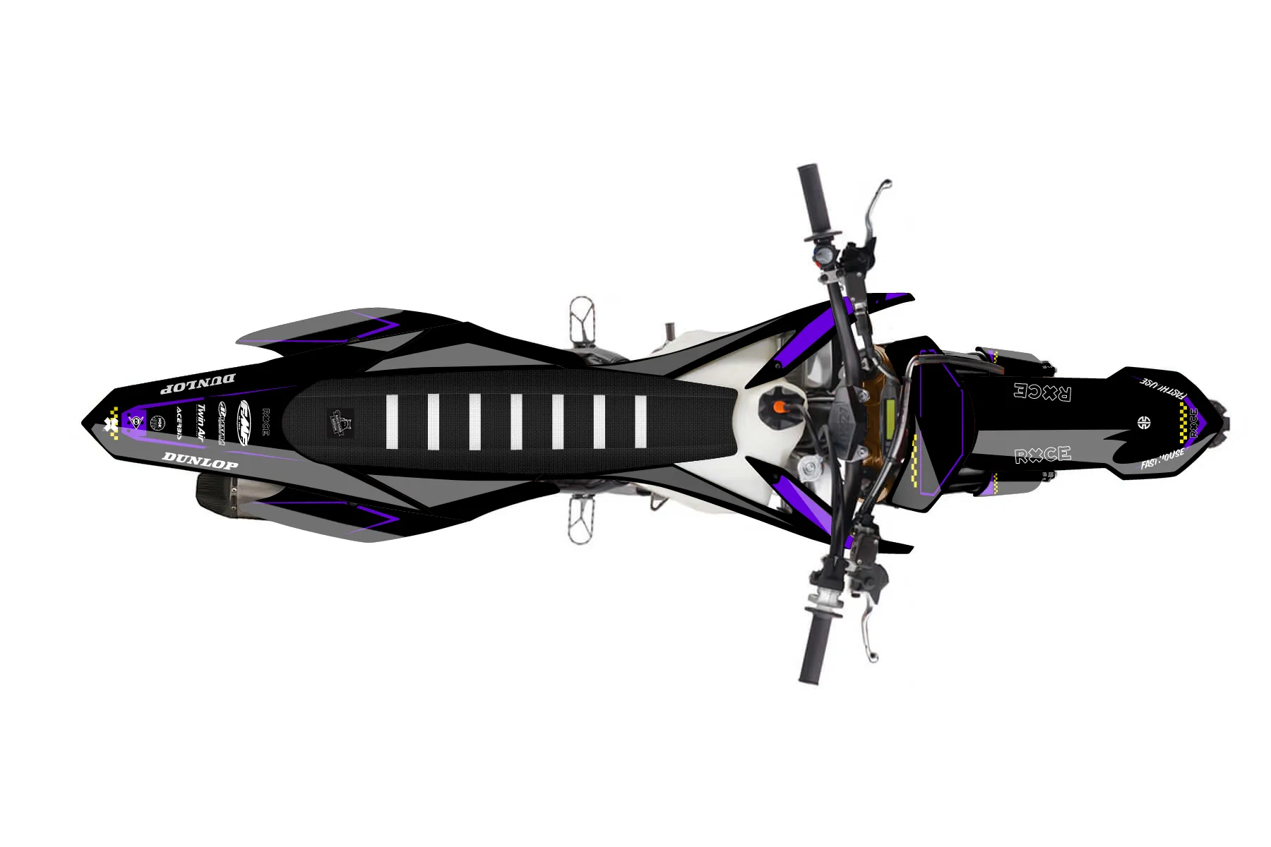 «Virtual» — готовый комплект графики серии Staple для KTM MX Graphic Kit KTM SX-F 450 2013. В комплекте: графика на бак и боковые облицовки, крылья (переднее и заднее), передний щиток, номерные таблички, защита вилки. Материал: ПВХ-винил 80 мкр с холодной ламинацией 300 мкр, общая толщина 380 мкр; покрытие глянцевое или матовое на выбор. Устойчив к UV-излучению, воде, бензину и мойке высокого давления. Клей акриловый на сольвентной основе — постоянный, для гибких пластиков. На простых поверхностях монтируется без нагрева; для сложных изгибов рекомендуем фен. Этот пресет можно заказать как есть или взять за основу в конструкторе: поменять цвета, добавить стартовый номер и свой бренд. Производство — 3–5 рабочих дней, доставка по России СДЭКом или Почтой, по СНГ — курьерскими службами.