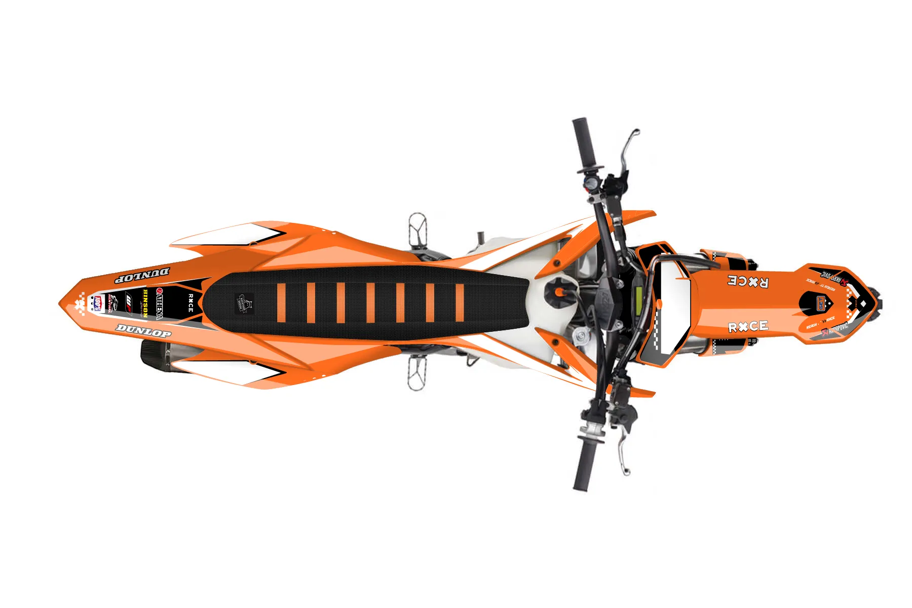 «Volt» — готовый комплект графики серии Staple для KTM MX Graphic Kit KTM SX-F 450 2013. В комплекте: графика на бак и боковые облицовки, крылья (переднее и заднее), передний щиток, номерные таблички, защита вилки. Материал: ПВХ-винил 80 мкр с холодной ламинацией 300 мкр, общая толщина 380 мкр; покрытие глянцевое или матовое на выбор. Устойчив к UV-излучению, воде, бензину и мойке высокого давления. Клей акриловый на сольвентной основе — постоянный, для гибких пластиков. На простых поверхностях монтируется без нагрева; для сложных изгибов рекомендуем фен. Этот пресет можно заказать как есть или взять за основу в конструкторе: поменять цвета, добавить стартовый номер и свой бренд. Производство — 3–5 рабочих дней, доставка по России СДЭКом или Почтой, по СНГ — курьерскими службами.