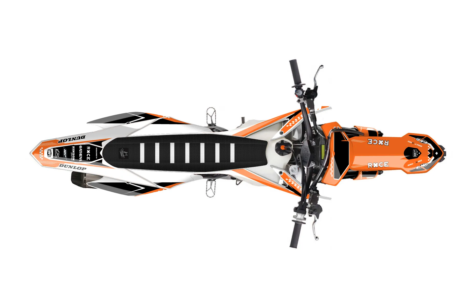 «Warp» — готовый комплект графики серии Staple для KTM MX Graphic Kit KTM SX-F 450 2013. В комплекте: графика на бак и боковые облицовки, крылья (переднее и заднее), передний щиток, номерные таблички, защита вилки. Материал: ПВХ-винил 80 мкр с холодной ламинацией 300 мкр, общая толщина 380 мкр; покрытие глянцевое или матовое на выбор. Устойчив к UV-излучению, воде, бензину и мойке высокого давления. Клей акриловый на сольвентной основе — постоянный, для гибких пластиков. На простых поверхностях монтируется без нагрева; для сложных изгибов рекомендуем фен. Этот пресет можно заказать как есть или взять за основу в конструкторе: поменять цвета, добавить стартовый номер и свой бренд. Производство — 3–5 рабочих дней, доставка по России СДЭКом или Почтой, по СНГ — курьерскими службами.