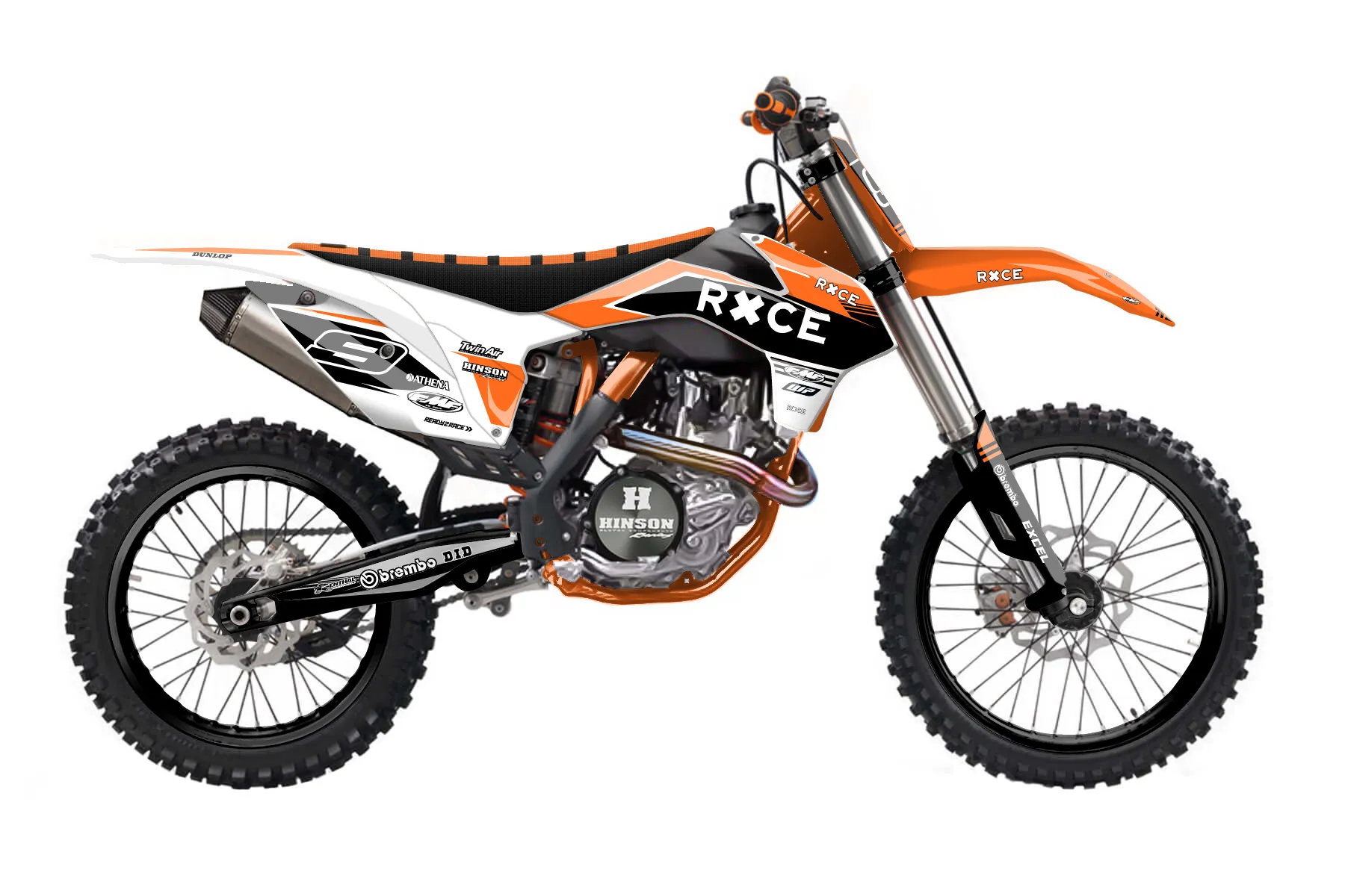 «Crowning» — готовый комплект графики серии Untucked для KTM MX Graphic Kit KTM SX-F 450 2013. В комплекте: графика на бак и боковые облицовки, крылья (переднее и заднее), передний щиток, номерные таблички, защита вилки. Материал: ПВХ-винил 80 мкр с холодной ламинацией 300 мкр, общая толщина 380 мкр; покрытие глянцевое или матовое на выбор. Устойчив к UV-излучению, воде, бензину и мойке высокого давления. Клей акриловый на сольвентной основе — постоянный, для гибких пластиков. На простых поверхностях монтируется без нагрева; для сложных изгибов рекомендуем фен. Этот пресет можно заказать как есть или взять за основу в конструкторе: поменять цвета, добавить стартовый номер и свой бренд. Производство — 3–5 рабочих дней, доставка по России СДЭКом или Почтой, по СНГ — курьерскими службами.