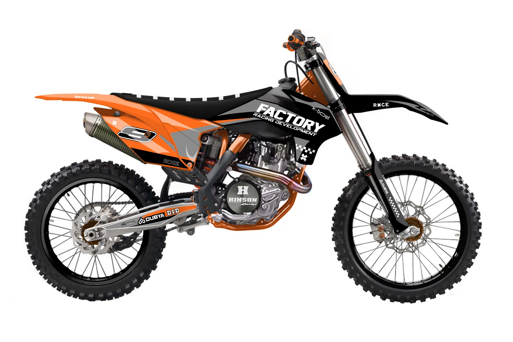 «Beyond» — готовый комплект графики серии Flow для KTM MX Graphic Kit KTM SX-F 450 2015. В комплекте: графика на бак и боковые облицовки, крылья (переднее и заднее), передний щиток, номерные таблички, защита вилки. Материал: ПВХ-винил 80 мкр с холодной ламинацией 300 мкр, общая толщина 380 мкр; покрытие глянцевое или матовое на выбор. Устойчив к UV-излучению, воде, бензину и мойке высокого давления. Клей акриловый на сольвентной основе — постоянный, для гибких пластиков. На простых поверхностях монтируется без нагрева; для сложных изгибов рекомендуем фен. Этот пресет можно заказать как есть или взять за основу в конструкторе: поменять цвета, добавить стартовый номер и свой бренд. Производство — 3–5 рабочих дней, доставка по России СДЭКом или Почтой, по СНГ — курьерскими службами.