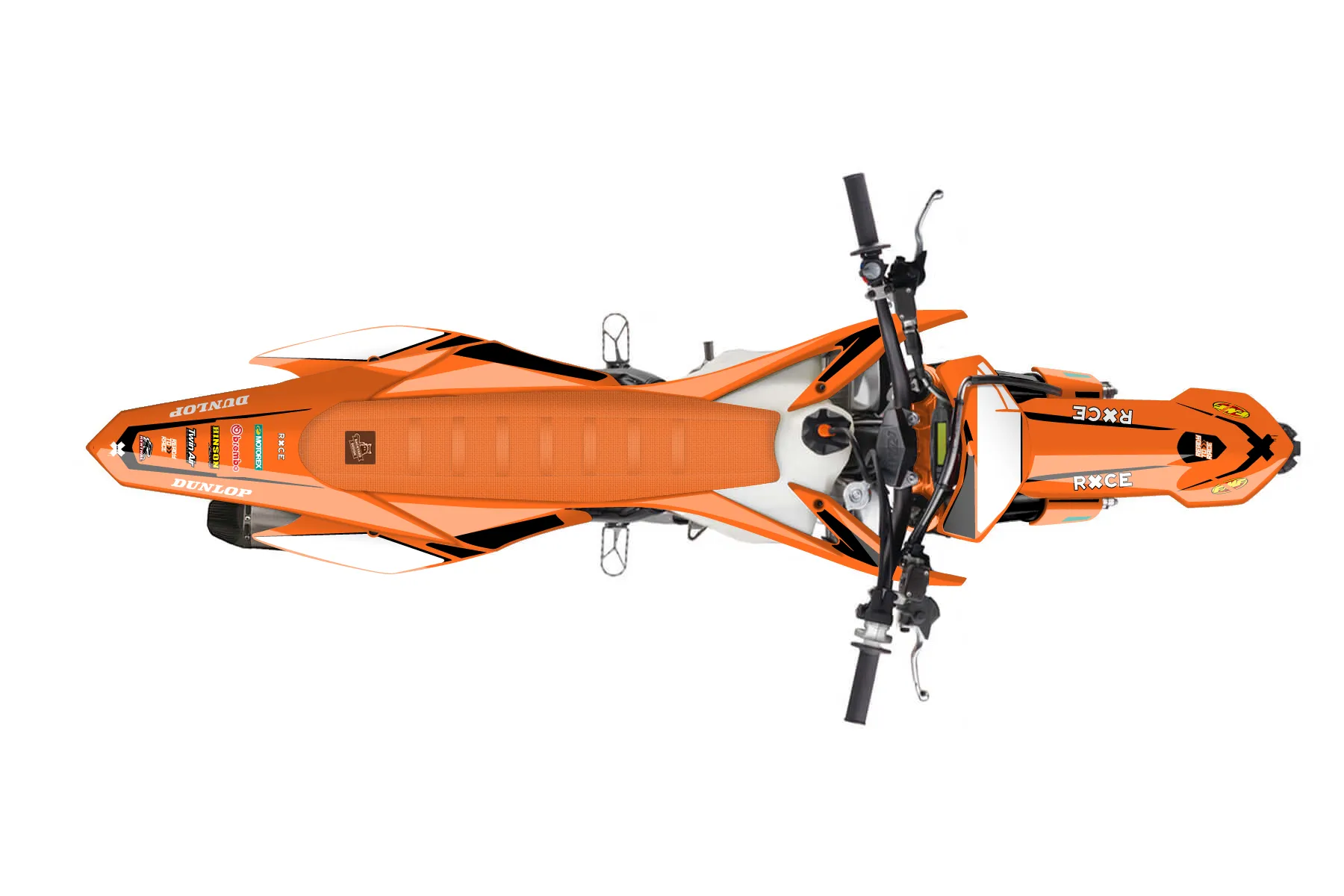 «Slice» — готовый комплект графики серии Flow для KTM MX Graphic Kit KTM SX-F 450 2015. В комплекте: графика на бак и боковые облицовки, крылья (переднее и заднее), передний щиток, номерные таблички, защита вилки. Материал: ПВХ-винил 80 мкр с холодной ламинацией 300 мкр, общая толщина 380 мкр; покрытие глянцевое или матовое на выбор. Устойчив к UV-излучению, воде, бензину и мойке высокого давления. Клей акриловый на сольвентной основе — постоянный, для гибких пластиков. На простых поверхностях монтируется без нагрева; для сложных изгибов рекомендуем фен. Этот пресет можно заказать как есть или взять за основу в конструкторе: поменять цвета, добавить стартовый номер и свой бренд. Производство — 3–5 рабочих дней, доставка по России СДЭКом или Почтой, по СНГ — курьерскими службами.