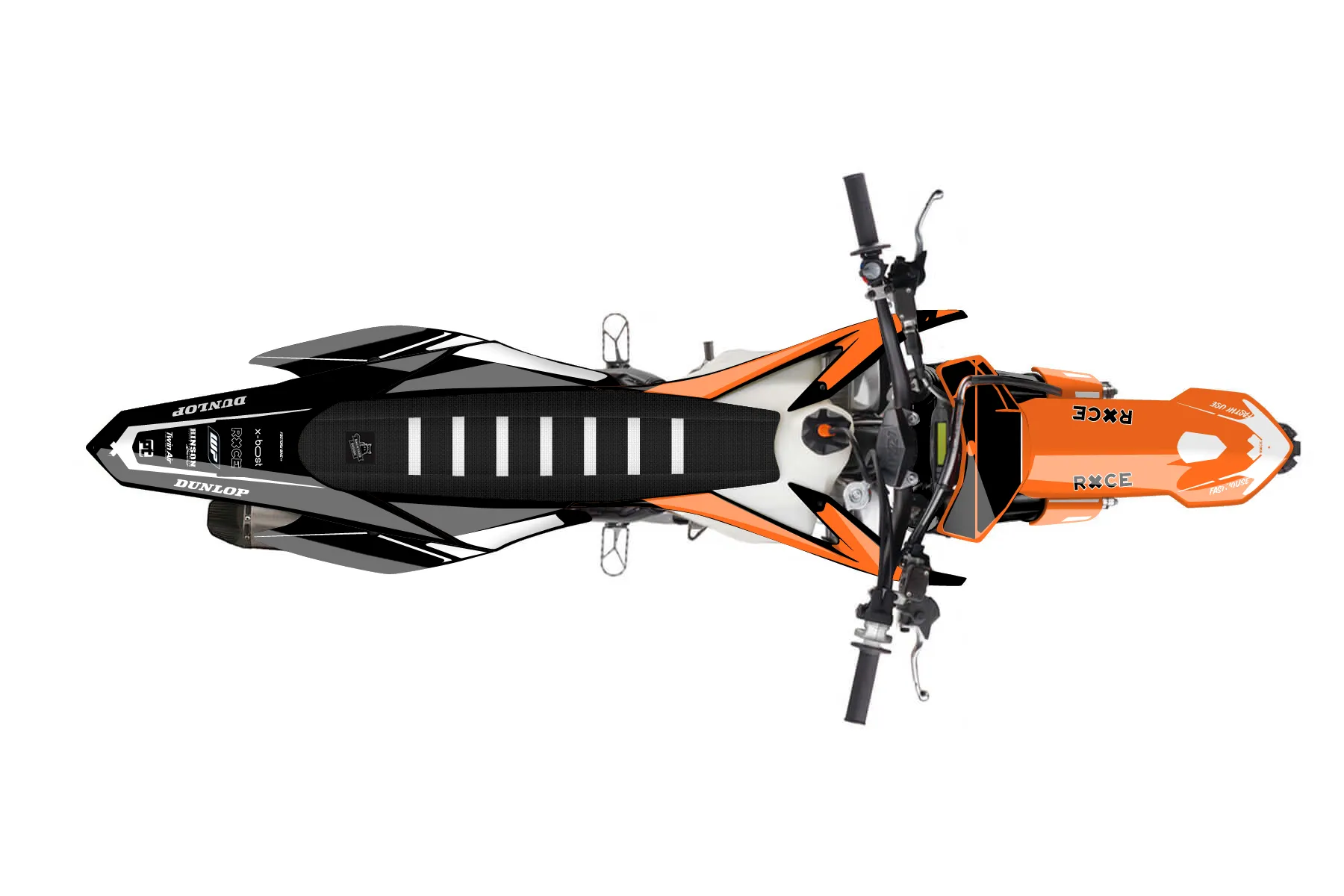 «Visonary» — готовый комплект графики серии Flow для KTM MX Graphic Kit KTM SX-F 450 2015. В комплекте: графика на бак и боковые облицовки, крылья (переднее и заднее), передний щиток, номерные таблички, защита вилки. Материал: ПВХ-винил 80 мкр с холодной ламинацией 300 мкр, общая толщина 380 мкр; покрытие глянцевое или матовое на выбор. Устойчив к UV-излучению, воде, бензину и мойке высокого давления. Клей акриловый на сольвентной основе — постоянный, для гибких пластиков. На простых поверхностях монтируется без нагрева; для сложных изгибов рекомендуем фен. Этот пресет можно заказать как есть или взять за основу в конструкторе: поменять цвета, добавить стартовый номер и свой бренд. Производство — 3–5 рабочих дней, доставка по России СДЭКом или Почтой, по СНГ — курьерскими службами.