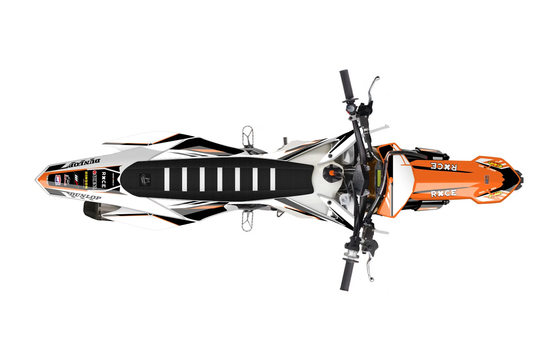 «Club» — готовый комплект графики серии Maverick для KTM MX Graphic Kit KTM SX-F 450 2015. В комплекте: графика на бак и боковые облицовки, крылья (переднее и заднее), передний щиток, номерные таблички, защита вилки. Материал: ПВХ-винил 80 мкр с холодной ламинацией 300 мкр, общая толщина 380 мкр; покрытие глянцевое или матовое на выбор. Устойчив к UV-излучению, воде, бензину и мойке высокого давления. Клей акриловый на сольвентной основе — постоянный, для гибких пластиков. На простых поверхностях монтируется без нагрева; для сложных изгибов рекомендуем фен. Этот пресет можно заказать как есть или взять за основу в конструкторе: поменять цвета, добавить стартовый номер и свой бренд. Производство — 3–5 рабочих дней, доставка по России СДЭКом или Почтой, по СНГ — курьерскими службами.