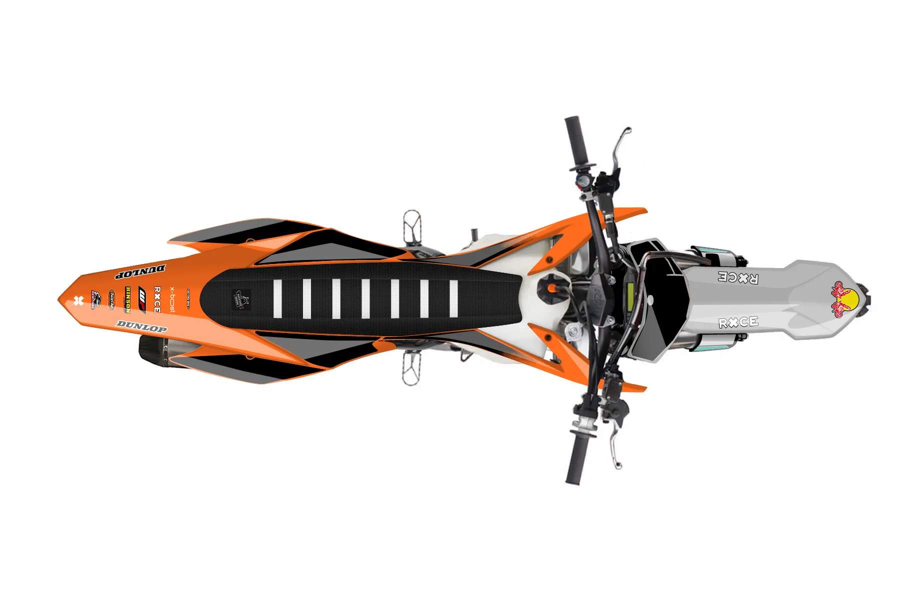 «Fuse» — готовый комплект графики серии Maverick для KTM MX Graphic Kit KTM SX-F 450 2015. В комплекте: графика на бак и боковые облицовки, крылья (переднее и заднее), передний щиток, номерные таблички, защита вилки. Материал: ПВХ-винил 80 мкр с холодной ламинацией 300 мкр, общая толщина 380 мкр; покрытие глянцевое или матовое на выбор. Устойчив к UV-излучению, воде, бензину и мойке высокого давления. Клей акриловый на сольвентной основе — постоянный, для гибких пластиков. На простых поверхностях монтируется без нагрева; для сложных изгибов рекомендуем фен. Этот пресет можно заказать как есть или взять за основу в конструкторе: поменять цвета, добавить стартовый номер и свой бренд. Производство — 3–5 рабочих дней, доставка по России СДЭКом или Почтой, по СНГ — курьерскими службами.