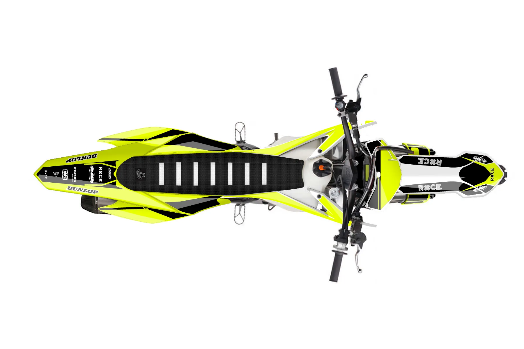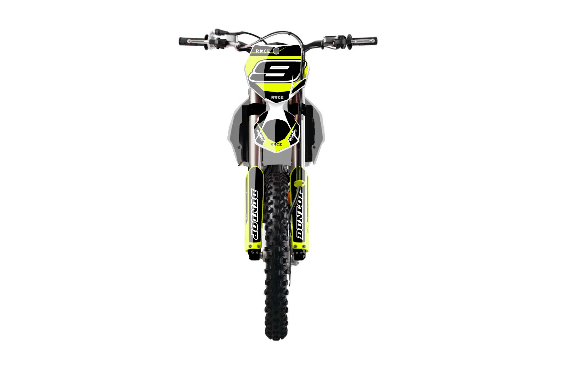 «Ryder Neon» — готовый комплект графики серии Maverick для KTM MX Graphic Kit KTM SX-F 450 2015. В комплекте: графика на бак и боковые облицовки, крылья (переднее и заднее), передний щиток, номерные таблички, защита вилки. Материал: ПВХ-винил 80 мкр с холодной ламинацией 300 мкр, общая толщина 380 мкр; покрытие глянцевое или матовое на выбор. Устойчив к UV-излучению, воде, бензину и мойке высокого давления. Клей акриловый на сольвентной основе — постоянный, для гибких пластиков. На простых поверхностях монтируется без нагрева; для сложных изгибов рекомендуем фен. Этот пресет можно заказать как есть или взять за основу в конструкторе: поменять цвета, добавить стартовый номер и свой бренд. Производство — 3–5 рабочих дней, доставка по России СДЭКом или Почтой, по СНГ — курьерскими службами.