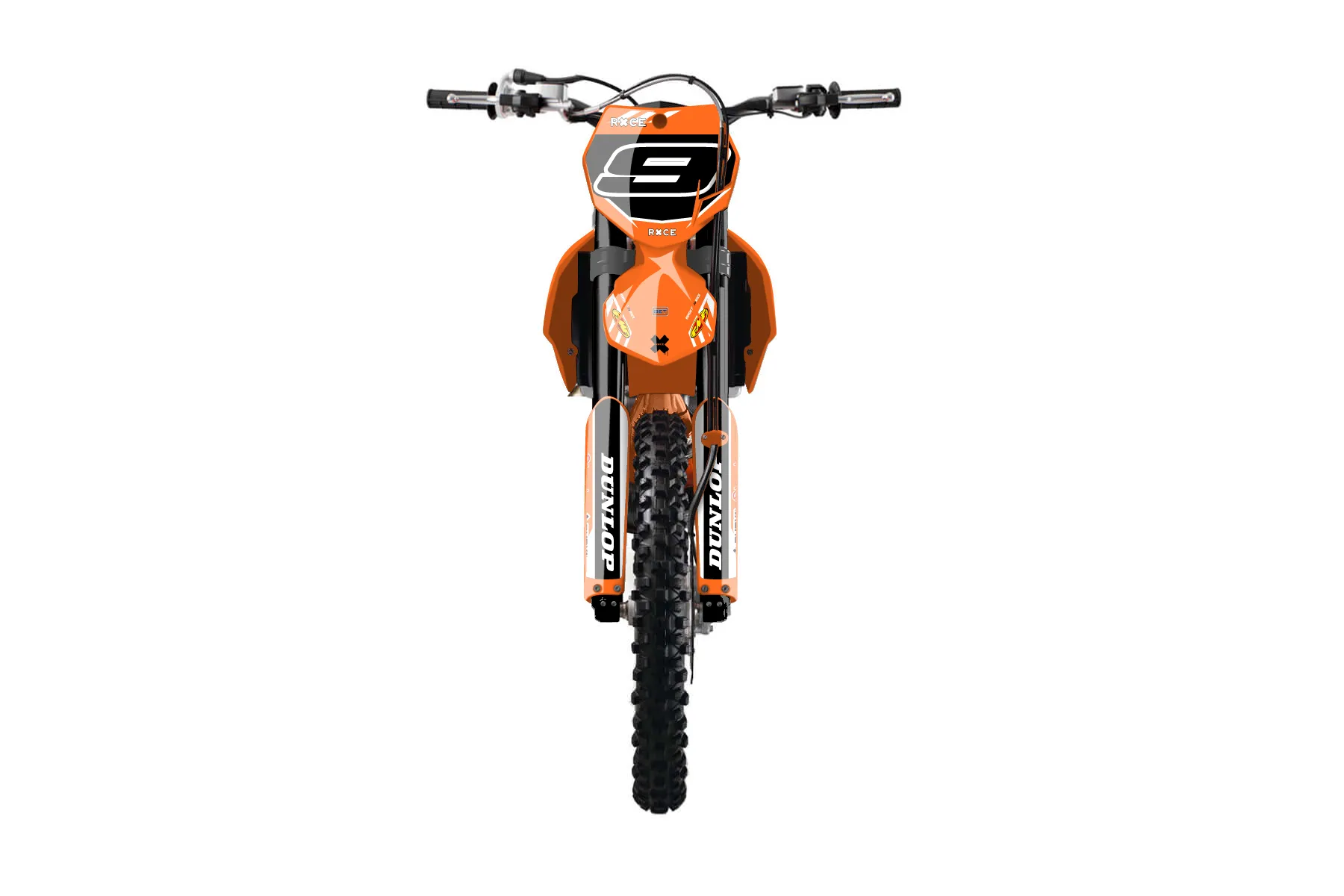 «Train» — готовый комплект графики серии Maverick для KTM MX Graphic Kit KTM SX-F 450 2015. В комплекте: графика на бак и боковые облицовки, крылья (переднее и заднее), передний щиток, номерные таблички, защита вилки. Материал: ПВХ-винил 80 мкр с холодной ламинацией 300 мкр, общая толщина 380 мкр; покрытие глянцевое или матовое на выбор. Устойчив к UV-излучению, воде, бензину и мойке высокого давления. Клей акриловый на сольвентной основе — постоянный, для гибких пластиков. На простых поверхностях монтируется без нагрева; для сложных изгибов рекомендуем фен. Этот пресет можно заказать как есть или взять за основу в конструкторе: поменять цвета, добавить стартовый номер и свой бренд. Производство — 3–5 рабочих дней, доставка по России СДЭКом или Почтой, по СНГ — курьерскими службами.