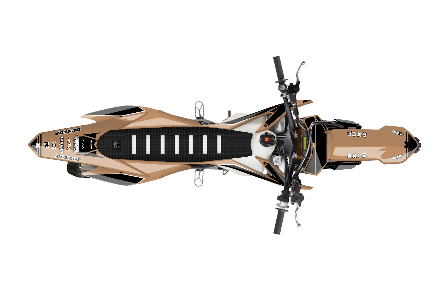 «Entire» — готовый комплект графики серии Untucked для KTM MX Graphic Kit KTM SX-F 450 2015. В комплекте: графика на бак и боковые облицовки, крылья (переднее и заднее), передний щиток, номерные таблички, защита вилки. Материал: ПВХ-винил 80 мкр с холодной ламинацией 300 мкр, общая толщина 380 мкр; покрытие глянцевое или матовое на выбор. Устойчив к UV-излучению, воде, бензину и мойке высокого давления. Клей акриловый на сольвентной основе — постоянный, для гибких пластиков. На простых поверхностях монтируется без нагрева; для сложных изгибов рекомендуем фен. Этот пресет можно заказать как есть или взять за основу в конструкторе: поменять цвета, добавить стартовый номер и свой бренд. Производство — 3–5 рабочих дней, доставка по России СДЭКом или Почтой, по СНГ — курьерскими службами.