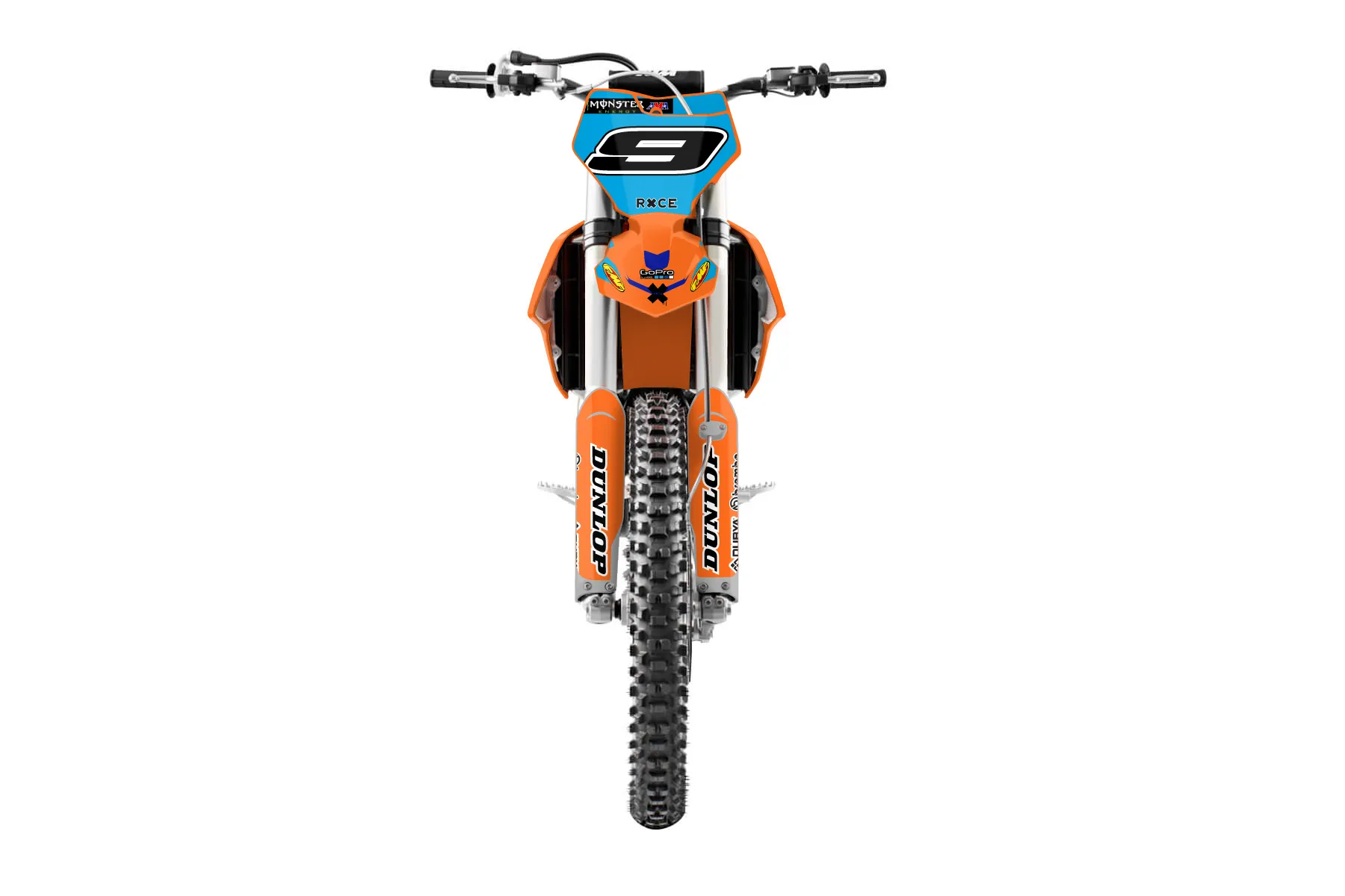 «gopro ktm» — готовый комплект графики серии Flow для KTM MX Graphic Kit KTM SX-F 450 2016. В комплекте: графика на бак и боковые облицовки, крылья (переднее и заднее), передний щиток, номерные таблички, защита вилки. Материал: ПВХ-винил 80 мкр с холодной ламинацией 300 мкр, общая толщина 380 мкр; покрытие глянцевое или матовое на выбор. Устойчив к UV-излучению, воде, бензину и мойке высокого давления. Клей акриловый на сольвентной основе — постоянный, для гибких пластиков. На простых поверхностях монтируется без нагрева; для сложных изгибов рекомендуем фен. Этот пресет можно заказать как есть или взять за основу в конструкторе: поменять цвета, добавить стартовый номер и свой бренд. Производство — 3–5 рабочих дней, доставка по России СДЭКом или Почтой, по СНГ — курьерскими службами.