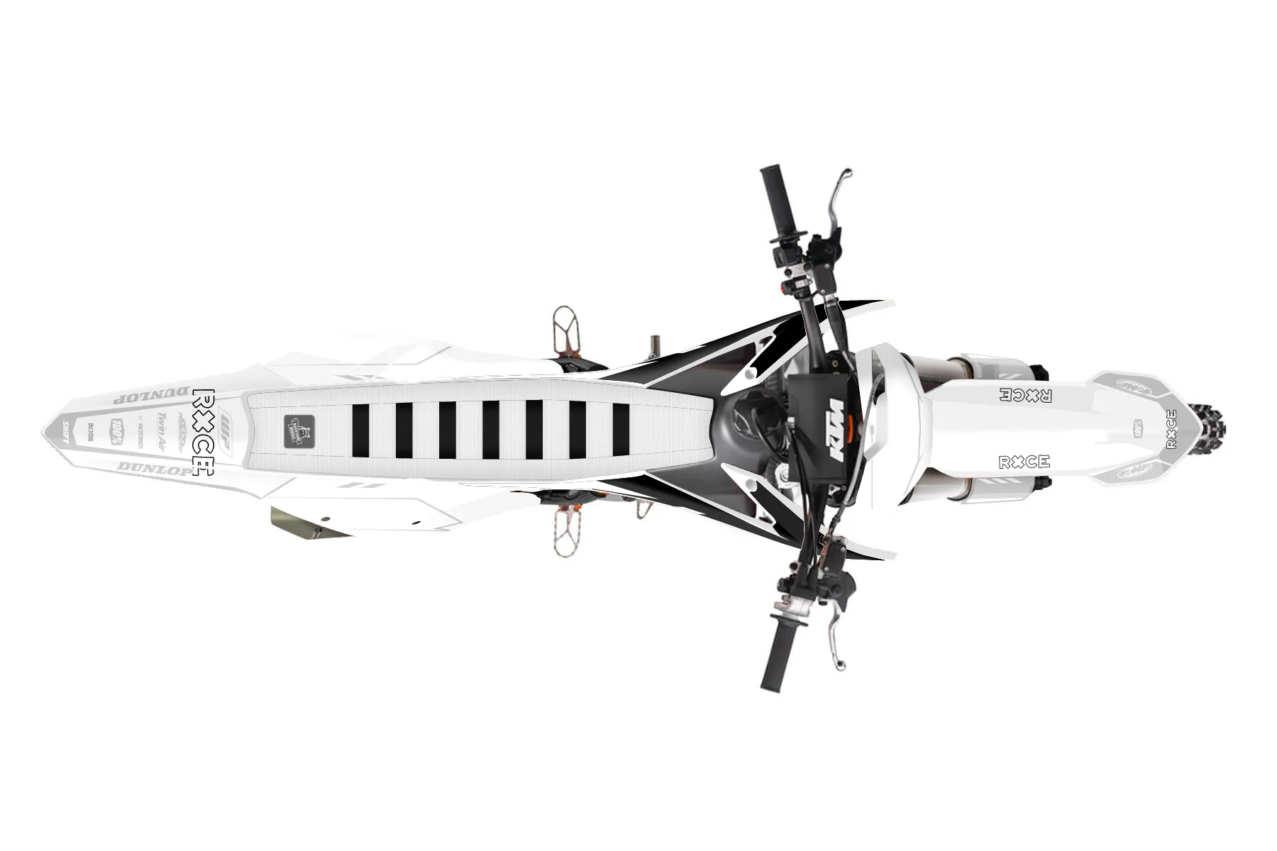 «ALLWHITE» — готовый комплект графики серии Maverick для KTM MX Graphic Kit KTM SX-F 450 2016. В комплекте: графика на бак и боковые облицовки, крылья (переднее и заднее), передний щиток, номерные таблички, защита вилки. Материал: ПВХ-винил 80 мкр с холодной ламинацией 300 мкр, общая толщина 380 мкр; покрытие глянцевое или матовое на выбор. Устойчив к UV-излучению, воде, бензину и мойке высокого давления. Клей акриловый на сольвентной основе — постоянный, для гибких пластиков. На простых поверхностях монтируется без нагрева; для сложных изгибов рекомендуем фен. Этот пресет можно заказать как есть или взять за основу в конструкторе: поменять цвета, добавить стартовый номер и свой бренд. Производство — 3–5 рабочих дней, доставка по России СДЭКом или Почтой, по СНГ — курьерскими службами.