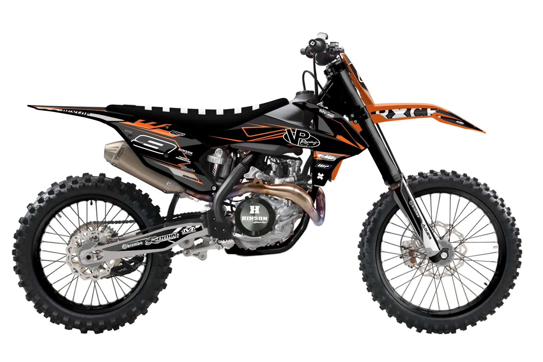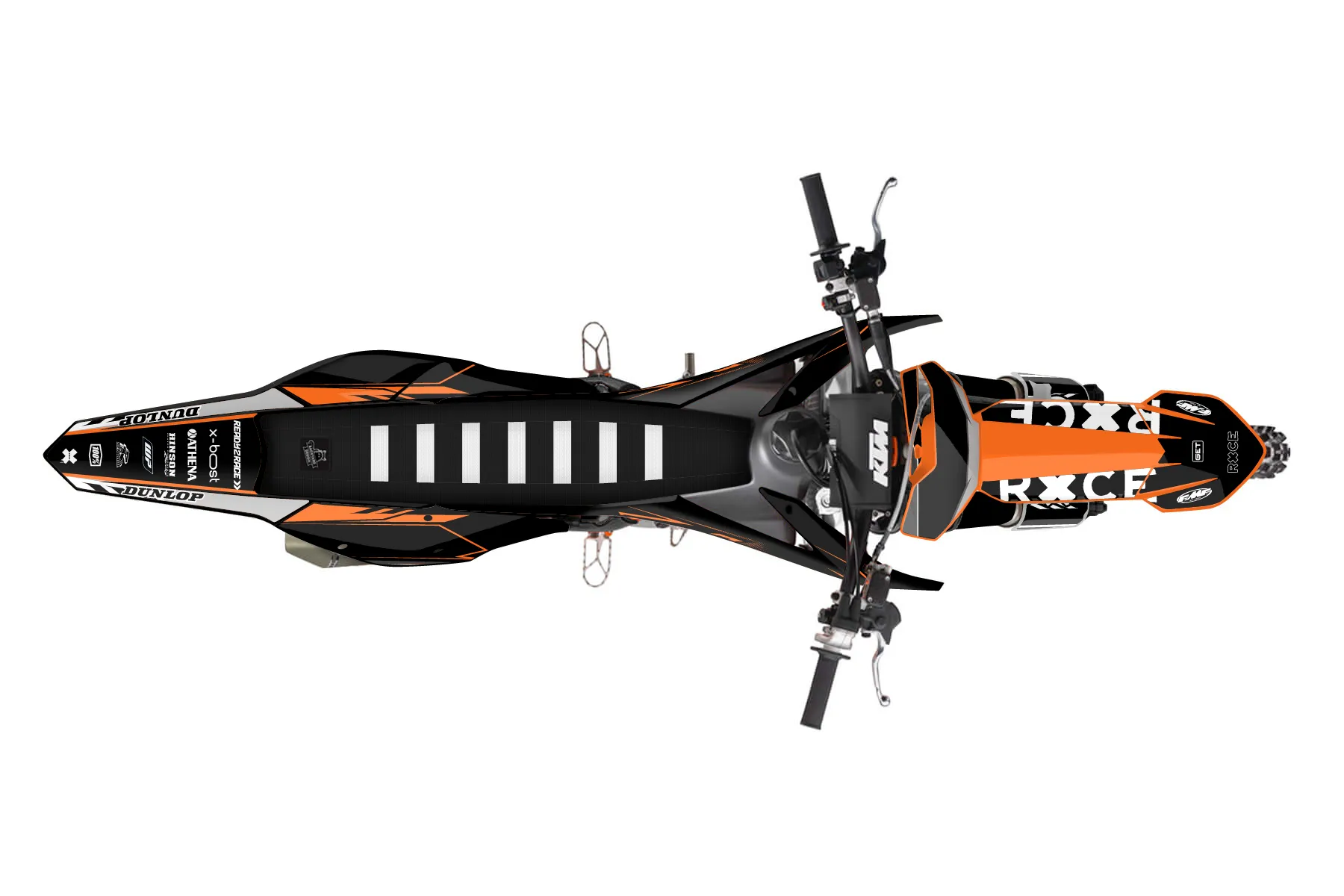«Ethan» — готовый комплект графики серии Maverick для KTM MX Graphic Kit KTM SX-F 450 2016. В комплекте: графика на бак и боковые облицовки, крылья (переднее и заднее), передний щиток, номерные таблички, защита вилки. Материал: ПВХ-винил 80 мкр с холодной ламинацией 300 мкр, общая толщина 380 мкр; покрытие глянцевое или матовое на выбор. Устойчив к UV-излучению, воде, бензину и мойке высокого давления. Клей акриловый на сольвентной основе — постоянный, для гибких пластиков. На простых поверхностях монтируется без нагрева; для сложных изгибов рекомендуем фен. Этот пресет можно заказать как есть или взять за основу в конструкторе: поменять цвета, добавить стартовый номер и свой бренд. Производство — 3–5 рабочих дней, доставка по России СДЭКом или Почтой, по СНГ — курьерскими службами.