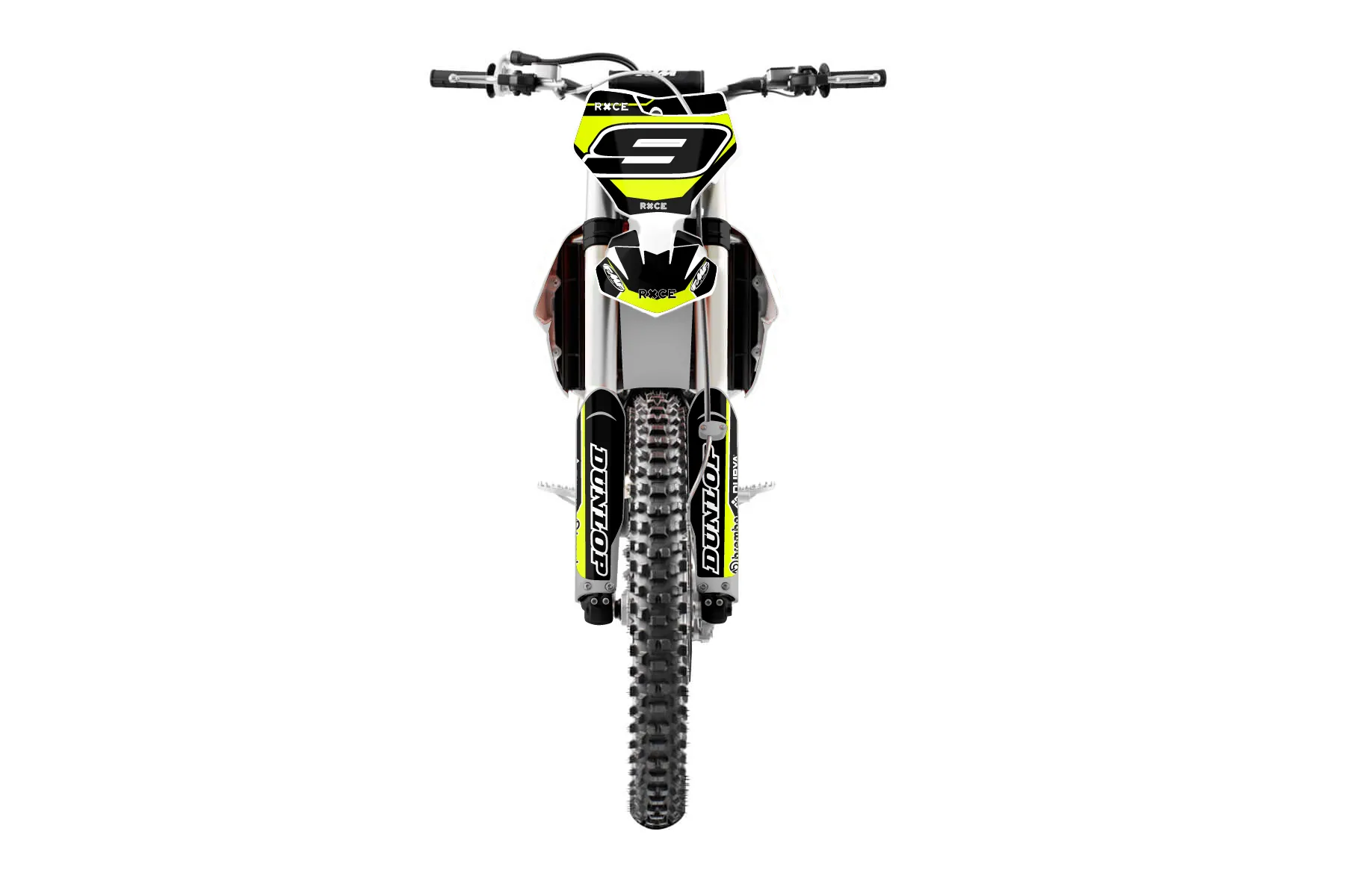 «Ryder Neon» — готовый комплект графики серии Maverick для KTM MX Graphic Kit KTM SX-F 450 2016. В комплекте: графика на бак и боковые облицовки, крылья (переднее и заднее), передний щиток, номерные таблички, защита вилки. Материал: ПВХ-винил 80 мкр с холодной ламинацией 300 мкр, общая толщина 380 мкр; покрытие глянцевое или матовое на выбор. Устойчив к UV-излучению, воде, бензину и мойке высокого давления. Клей акриловый на сольвентной основе — постоянный, для гибких пластиков. На простых поверхностях монтируется без нагрева; для сложных изгибов рекомендуем фен. Этот пресет можно заказать как есть или взять за основу в конструкторе: поменять цвета, добавить стартовый номер и свой бренд. Производство — 3–5 рабочих дней, доставка по России СДЭКом или Почтой, по СНГ — курьерскими службами.