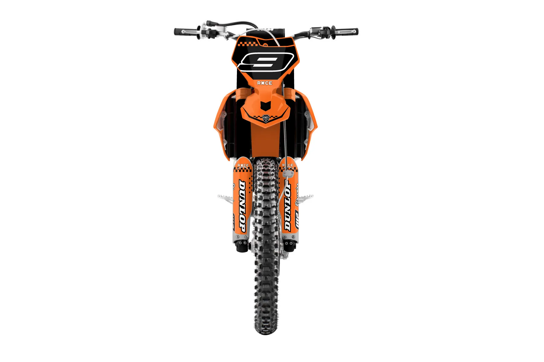 «Fasthouse orange» — готовый комплект графики серии Staple для KTM MX Graphic Kit KTM SX-F 450 2016. В комплекте: графика на бак и боковые облицовки, крылья (переднее и заднее), передний щиток, номерные таблички, защита вилки. Материал: ПВХ-винил 80 мкр с холодной ламинацией 300 мкр, общая толщина 380 мкр; покрытие глянцевое или матовое на выбор. Устойчив к UV-излучению, воде, бензину и мойке высокого давления. Клей акриловый на сольвентной основе — постоянный, для гибких пластиков. На простых поверхностях монтируется без нагрева; для сложных изгибов рекомендуем фен. Этот пресет можно заказать как есть или взять за основу в конструкторе: поменять цвета, добавить стартовый номер и свой бренд. Производство — 3–5 рабочих дней, доставка по России СДЭКом или Почтой, по СНГ — курьерскими службами.