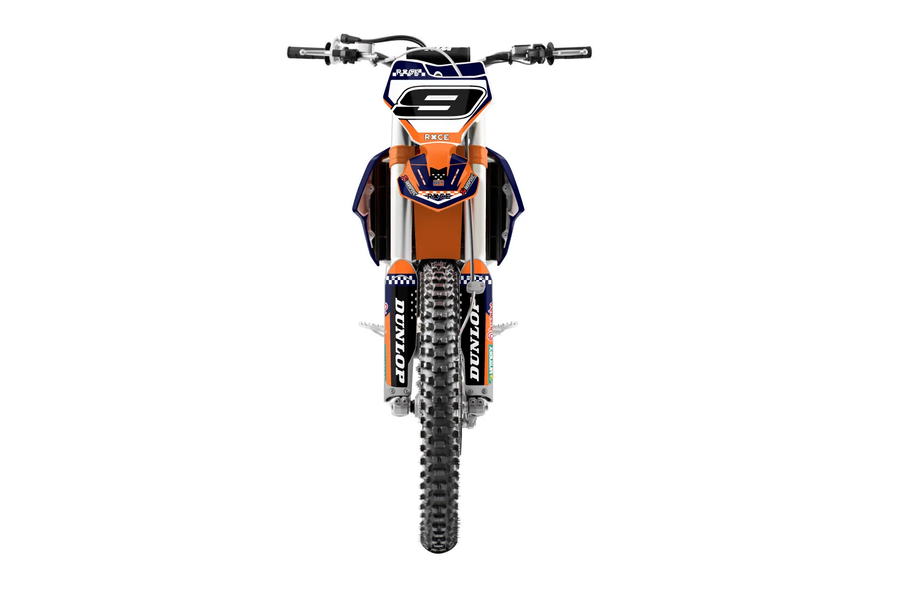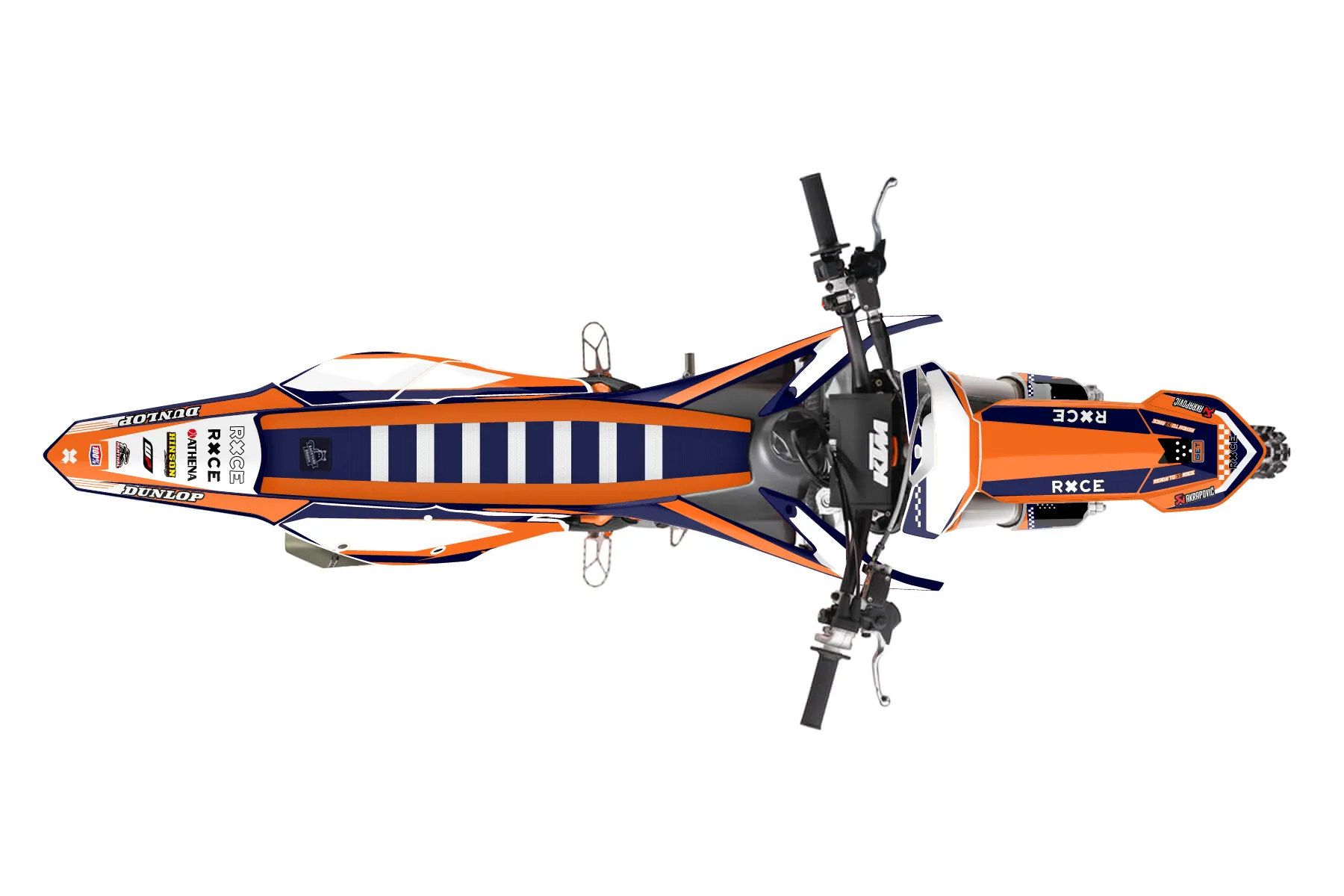 «KTM Custom» — готовый комплект графики серии Staple для KTM MX Graphic Kit KTM SX-F 450 2016. В комплекте: графика на бак и боковые облицовки, крылья (переднее и заднее), передний щиток, номерные таблички, защита вилки. Материал: ПВХ-винил 80 мкр с холодной ламинацией 300 мкр, общая толщина 380 мкр; покрытие глянцевое или матовое на выбор. Устойчив к UV-излучению, воде, бензину и мойке высокого давления. Клей акриловый на сольвентной основе — постоянный, для гибких пластиков. На простых поверхностях монтируется без нагрева; для сложных изгибов рекомендуем фен. Этот пресет можно заказать как есть или взять за основу в конструкторе: поменять цвета, добавить стартовый номер и свой бренд. Производство — 3–5 рабочих дней, доставка по России СДЭКом или Почтой, по СНГ — курьерскими службами.