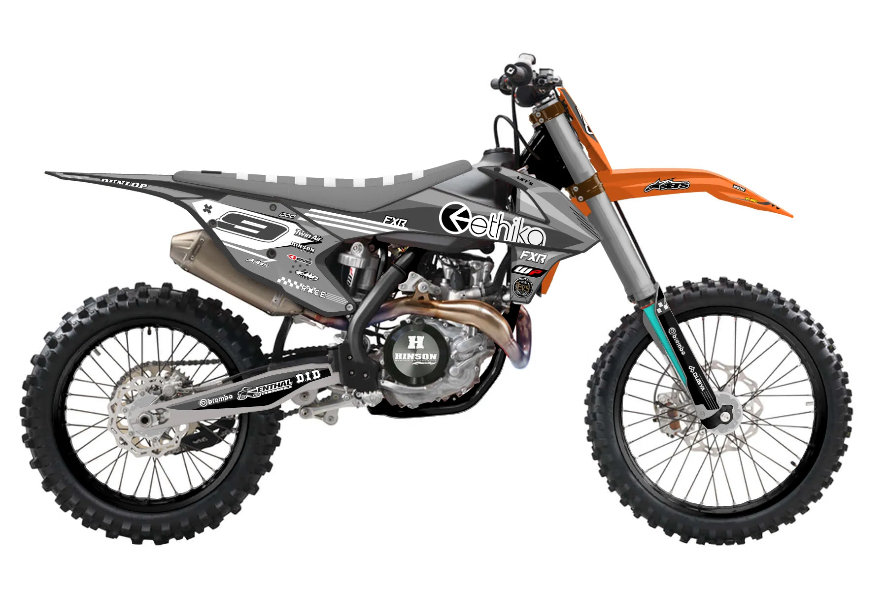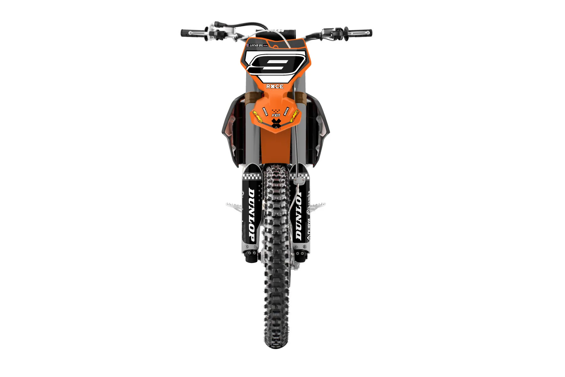 «papa d» — готовый комплект графики серии Staple для KTM MX Graphic Kit KTM SX-F 450 2016. В комплекте: графика на бак и боковые облицовки, крылья (переднее и заднее), передний щиток, номерные таблички, защита вилки. Материал: ПВХ-винил 80 мкр с холодной ламинацией 300 мкр, общая толщина 380 мкр; покрытие глянцевое или матовое на выбор. Устойчив к UV-излучению, воде, бензину и мойке высокого давления. Клей акриловый на сольвентной основе — постоянный, для гибких пластиков. На простых поверхностях монтируется без нагрева; для сложных изгибов рекомендуем фен. Этот пресет можно заказать как есть или взять за основу в конструкторе: поменять цвета, добавить стартовый номер и свой бренд. Производство — 3–5 рабочих дней, доставка по России СДЭКом или Почтой, по СНГ — курьерскими службами.