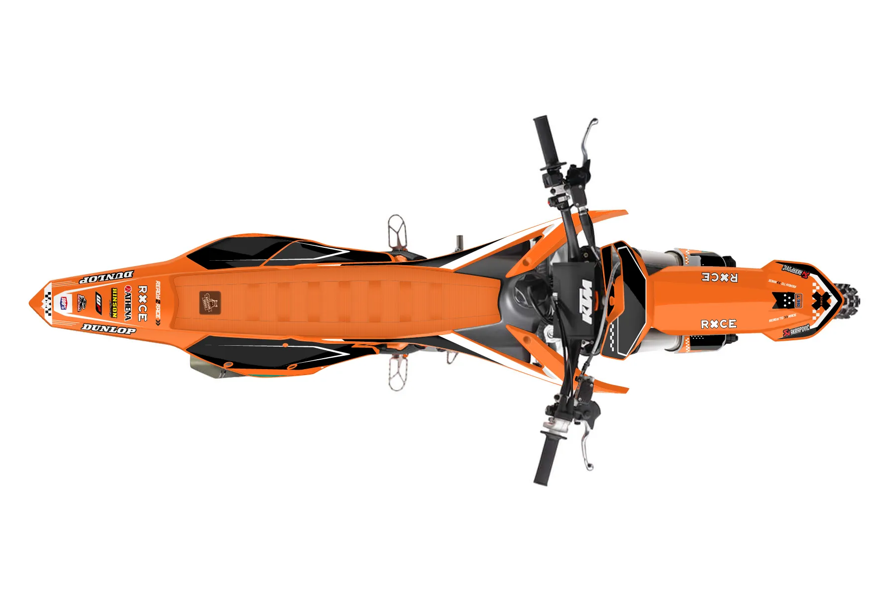 «Stamp» — готовый комплект графики серии Staple для KTM MX Graphic Kit KTM SX-F 450 2016. В комплекте: графика на бак и боковые облицовки, крылья (переднее и заднее), передний щиток, номерные таблички, защита вилки. Материал: ПВХ-винил 80 мкр с холодной ламинацией 300 мкр, общая толщина 380 мкр; покрытие глянцевое или матовое на выбор. Устойчив к UV-излучению, воде, бензину и мойке высокого давления. Клей акриловый на сольвентной основе — постоянный, для гибких пластиков. На простых поверхностях монтируется без нагрева; для сложных изгибов рекомендуем фен. Этот пресет можно заказать как есть или взять за основу в конструкторе: поменять цвета, добавить стартовый номер и свой бренд. Производство — 3–5 рабочих дней, доставка по России СДЭКом или Почтой, по СНГ — курьерскими службами.