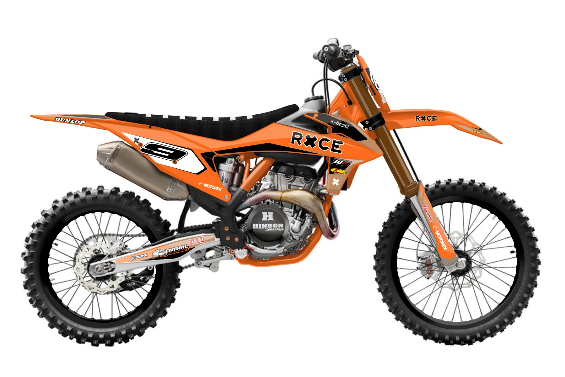 «Bang» — готовый комплект графики серии Flow для KTM MX Graphic Kit KTM SX-F 450 2019. В комплекте: графика на бак и боковые облицовки, крылья (переднее и заднее), передний щиток, номерные таблички, защита вилки. Материал: ПВХ-винил 80 мкр с холодной ламинацией 300 мкр, общая толщина 380 мкр; покрытие глянцевое или матовое на выбор. Устойчив к UV-излучению, воде, бензину и мойке высокого давления. Клей акриловый на сольвентной основе — постоянный, для гибких пластиков. На простых поверхностях монтируется без нагрева; для сложных изгибов рекомендуем фен. Этот пресет можно заказать как есть или взять за основу в конструкторе: поменять цвета, добавить стартовый номер и свой бренд. Производство — 3–5 рабочих дней, доставка по России СДЭКом или Почтой, по СНГ — курьерскими службами.