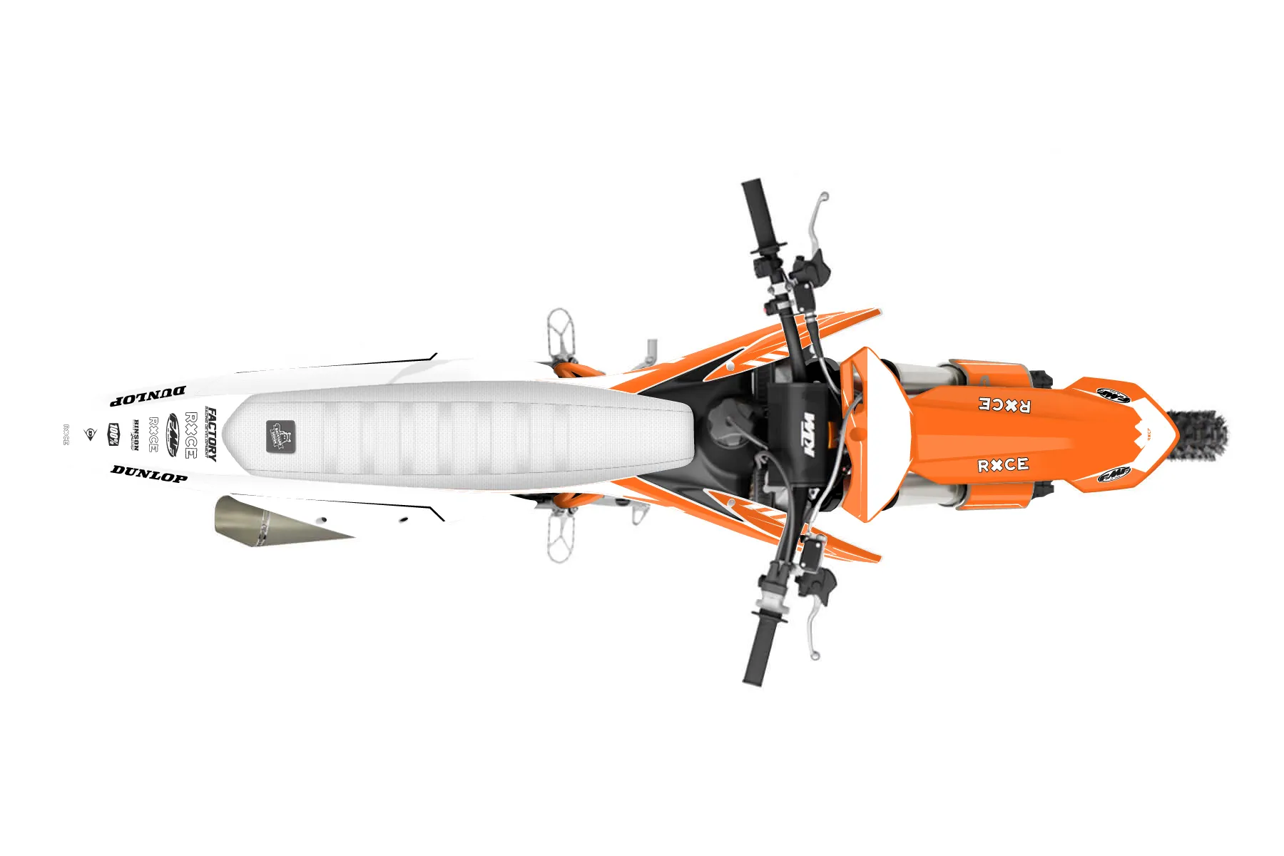 «Bones» — готовый комплект графики серии Maverick для KTM MX Graphic Kit KTM SX-F 450 2019. В комплекте: графика на бак и боковые облицовки, крылья (переднее и заднее), передний щиток, номерные таблички, защита вилки. Материал: ПВХ-винил 80 мкр с холодной ламинацией 300 мкр, общая толщина 380 мкр; покрытие глянцевое или матовое на выбор. Устойчив к UV-излучению, воде, бензину и мойке высокого давления. Клей акриловый на сольвентной основе — постоянный, для гибких пластиков. На простых поверхностях монтируется без нагрева; для сложных изгибов рекомендуем фен. Этот пресет можно заказать как есть или взять за основу в конструкторе: поменять цвета, добавить стартовый номер и свой бренд. Производство — 3–5 рабочих дней, доставка по России СДЭКом или Почтой, по СНГ — курьерскими службами.