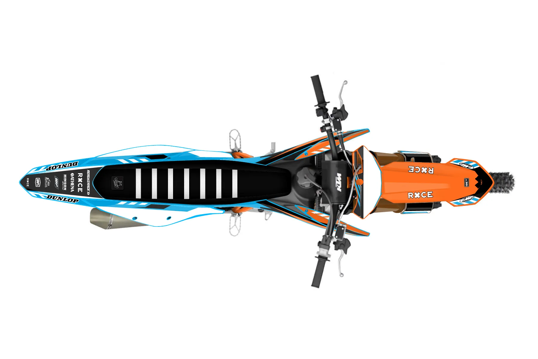 «Checkered» — готовый комплект графики серии Maverick для KTM MX Graphic Kit KTM SX-F 450 2019. В комплекте: графика на бак и боковые облицовки, крылья (переднее и заднее), передний щиток, номерные таблички, защита вилки. Материал: ПВХ-винил 80 мкр с холодной ламинацией 300 мкр, общая толщина 380 мкр; покрытие глянцевое или матовое на выбор. Устойчив к UV-излучению, воде, бензину и мойке высокого давления. Клей акриловый на сольвентной основе — постоянный, для гибких пластиков. На простых поверхностях монтируется без нагрева; для сложных изгибов рекомендуем фен. Этот пресет можно заказать как есть или взять за основу в конструкторе: поменять цвета, добавить стартовый номер и свой бренд. Производство — 3–5 рабочих дней, доставка по России СДЭКом или Почтой, по СНГ — курьерскими службами.