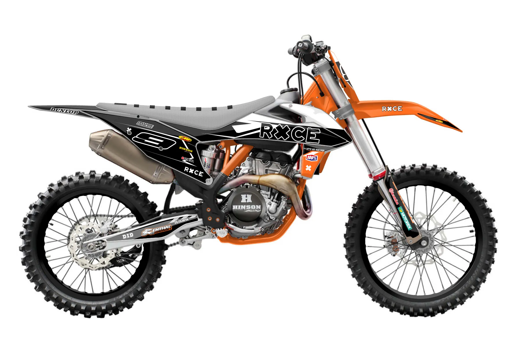 «Eleven» — готовый комплект графики серии Maverick для KTM MX Graphic Kit KTM SX-F 450 2019. В комплекте: графика на бак и боковые облицовки, крылья (переднее и заднее), передний щиток, номерные таблички, защита вилки. Материал: ПВХ-винил 80 мкр с холодной ламинацией 300 мкр, общая толщина 380 мкр; покрытие глянцевое или матовое на выбор. Устойчив к UV-излучению, воде, бензину и мойке высокого давления. Клей акриловый на сольвентной основе — постоянный, для гибких пластиков. На простых поверхностях монтируется без нагрева; для сложных изгибов рекомендуем фен. Этот пресет можно заказать как есть или взять за основу в конструкторе: поменять цвета, добавить стартовый номер и свой бренд. Производство — 3–5 рабочих дней, доставка по России СДЭКом или Почтой, по СНГ — курьерскими службами.