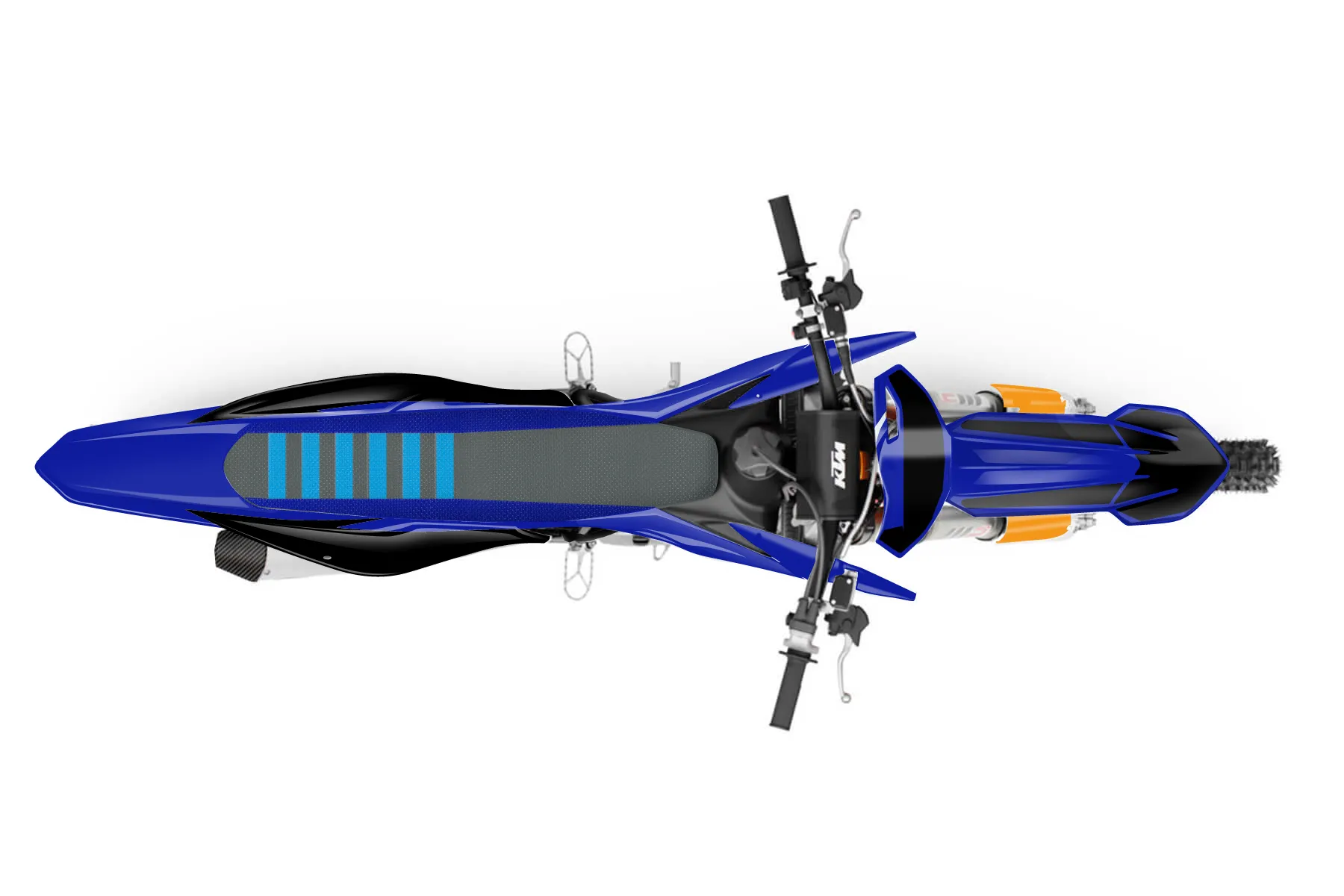 «CustomDesignYZ250» — готовый комплект графики серии Modified для KTM MX Graphic Kit KTM SX-F 450 2019. В комплекте: графика на бак и боковые облицовки, крылья (переднее и заднее), передний щиток, номерные таблички, защита вилки. Материал: ПВХ-винил 80 мкр с холодной ламинацией 300 мкр, общая толщина 380 мкр; покрытие глянцевое или матовое на выбор. Устойчив к UV-излучению, воде, бензину и мойке высокого давления. Клей акриловый на сольвентной основе — постоянный, для гибких пластиков. На простых поверхностях монтируется без нагрева; для сложных изгибов рекомендуем фен. Этот пресет можно заказать как есть или взять за основу в конструкторе: поменять цвета, добавить стартовый номер и свой бренд. Производство — 3–5 рабочих дней, доставка по России СДЭКом или Почтой, по СНГ — курьерскими службами.