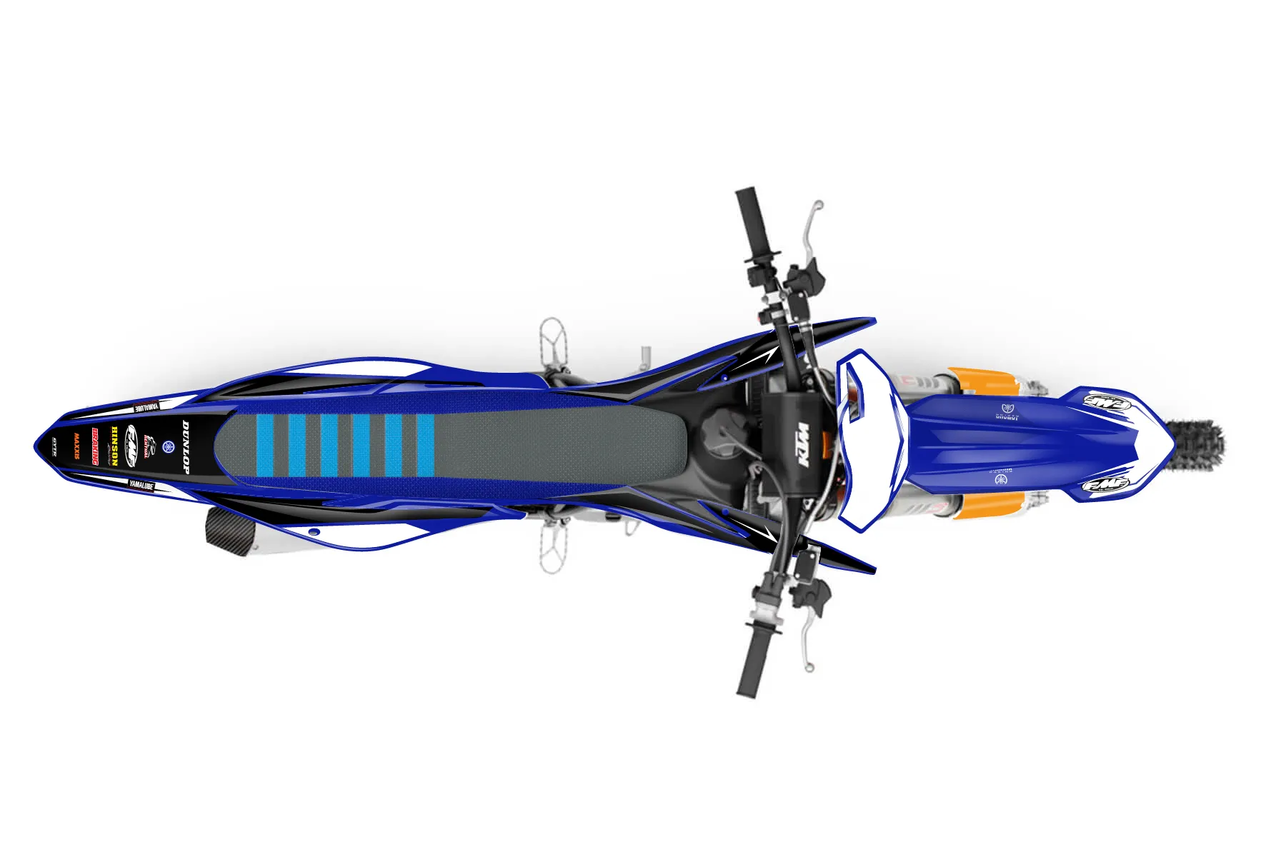 «YZ250 2st» — готовый комплект графики серии Replica для KTM MX Graphic Kit KTM SX-F 450 2019. В комплекте: графика на бак и боковые облицовки, крылья (переднее и заднее), передний щиток, номерные таблички, защита вилки. Материал: ПВХ-винил 80 мкр с холодной ламинацией 300 мкр, общая толщина 380 мкр; покрытие глянцевое или матовое на выбор. Устойчив к UV-излучению, воде, бензину и мойке высокого давления. Клей акриловый на сольвентной основе — постоянный, для гибких пластиков. На простых поверхностях монтируется без нагрева; для сложных изгибов рекомендуем фен. Этот пресет можно заказать как есть или взять за основу в конструкторе: поменять цвета, добавить стартовый номер и свой бренд. Производство — 3–5 рабочих дней, доставка по России СДЭКом или Почтой, по СНГ — курьерскими службами.