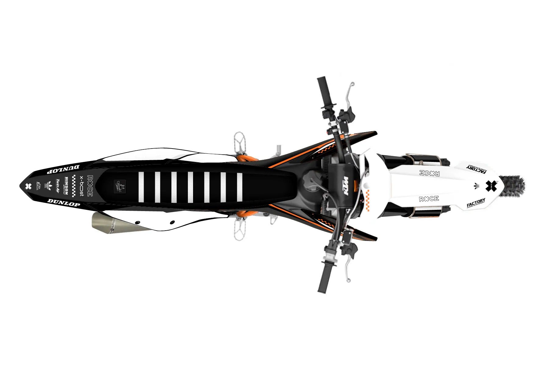 «Covering» — готовый комплект графики серии Staple для KTM MX Graphic Kit KTM SX-F 450 2019. В комплекте: графика на бак и боковые облицовки, крылья (переднее и заднее), передний щиток, номерные таблички, защита вилки. Материал: ПВХ-винил 80 мкр с холодной ламинацией 300 мкр, общая толщина 380 мкр; покрытие глянцевое или матовое на выбор. Устойчив к UV-излучению, воде, бензину и мойке высокого давления. Клей акриловый на сольвентной основе — постоянный, для гибких пластиков. На простых поверхностях монтируется без нагрева; для сложных изгибов рекомендуем фен. Этот пресет можно заказать как есть или взять за основу в конструкторе: поменять цвета, добавить стартовый номер и свой бренд. Производство — 3–5 рабочих дней, доставка по России СДЭКом или Почтой, по СНГ — курьерскими службами.