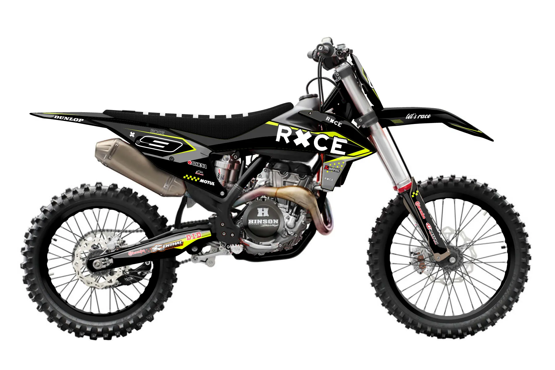 «Refuse Neon» — готовый комплект графики серии Staple для KTM MX Graphic Kit KTM SX-F 450 2019. В комплекте: графика на бак и боковые облицовки, крылья (переднее и заднее), передний щиток, номерные таблички, защита вилки. Материал: ПВХ-винил 80 мкр с холодной ламинацией 300 мкр, общая толщина 380 мкр; покрытие глянцевое или матовое на выбор. Устойчив к UV-излучению, воде, бензину и мойке высокого давления. Клей акриловый на сольвентной основе — постоянный, для гибких пластиков. На простых поверхностях монтируется без нагрева; для сложных изгибов рекомендуем фен. Этот пресет можно заказать как есть или взять за основу в конструкторе: поменять цвета, добавить стартовый номер и свой бренд. Производство — 3–5 рабочих дней, доставка по России СДЭКом или Почтой, по СНГ — курьерскими службами.