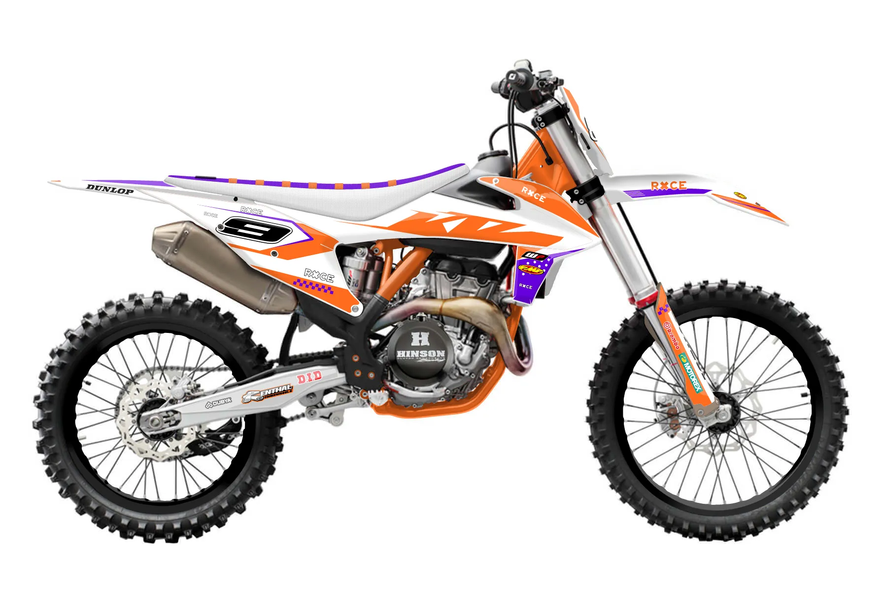 «Retro» — готовый комплект графики серии Staple для KTM MX Graphic Kit KTM SX-F 450 2019. В комплекте: графика на бак и боковые облицовки, крылья (переднее и заднее), передний щиток, номерные таблички, защита вилки. Материал: ПВХ-винил 80 мкр с холодной ламинацией 300 мкр, общая толщина 380 мкр; покрытие глянцевое или матовое на выбор. Устойчив к UV-излучению, воде, бензину и мойке высокого давления. Клей акриловый на сольвентной основе — постоянный, для гибких пластиков. На простых поверхностях монтируется без нагрева; для сложных изгибов рекомендуем фен. Этот пресет можно заказать как есть или взять за основу в конструкторе: поменять цвета, добавить стартовый номер и свой бренд. Производство — 3–5 рабочих дней, доставка по России СДЭКом или Почтой, по СНГ — курьерскими службами.