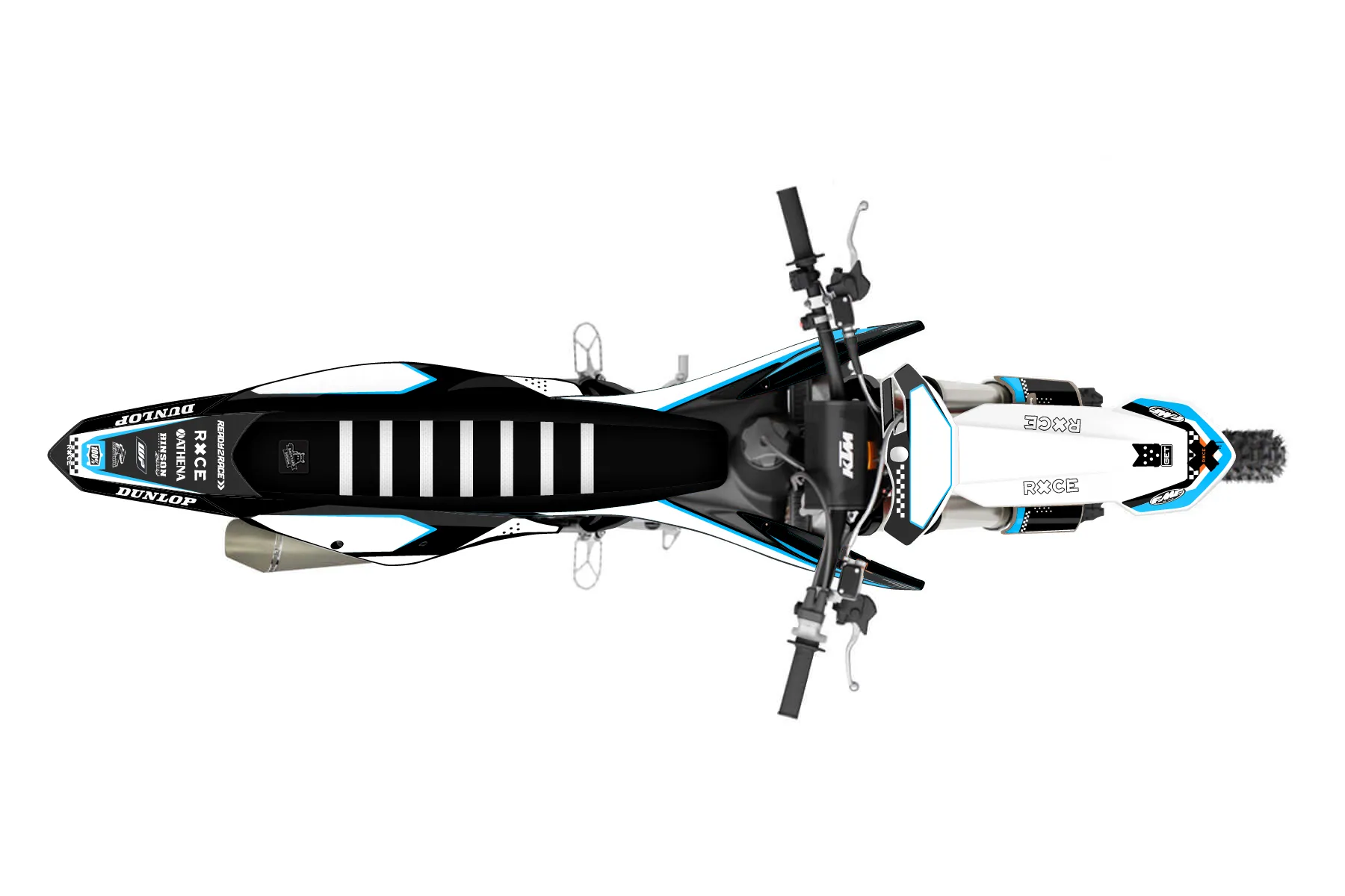 «Rule» — готовый комплект графики серии Staple для KTM MX Graphic Kit KTM SX-F 450 2019. В комплекте: графика на бак и боковые облицовки, крылья (переднее и заднее), передний щиток, номерные таблички, защита вилки. Материал: ПВХ-винил 80 мкр с холодной ламинацией 300 мкр, общая толщина 380 мкр; покрытие глянцевое или матовое на выбор. Устойчив к UV-излучению, воде, бензину и мойке высокого давления. Клей акриловый на сольвентной основе — постоянный, для гибких пластиков. На простых поверхностях монтируется без нагрева; для сложных изгибов рекомендуем фен. Этот пресет можно заказать как есть или взять за основу в конструкторе: поменять цвета, добавить стартовый номер и свой бренд. Производство — 3–5 рабочих дней, доставка по России СДЭКом или Почтой, по СНГ — курьерскими службами.