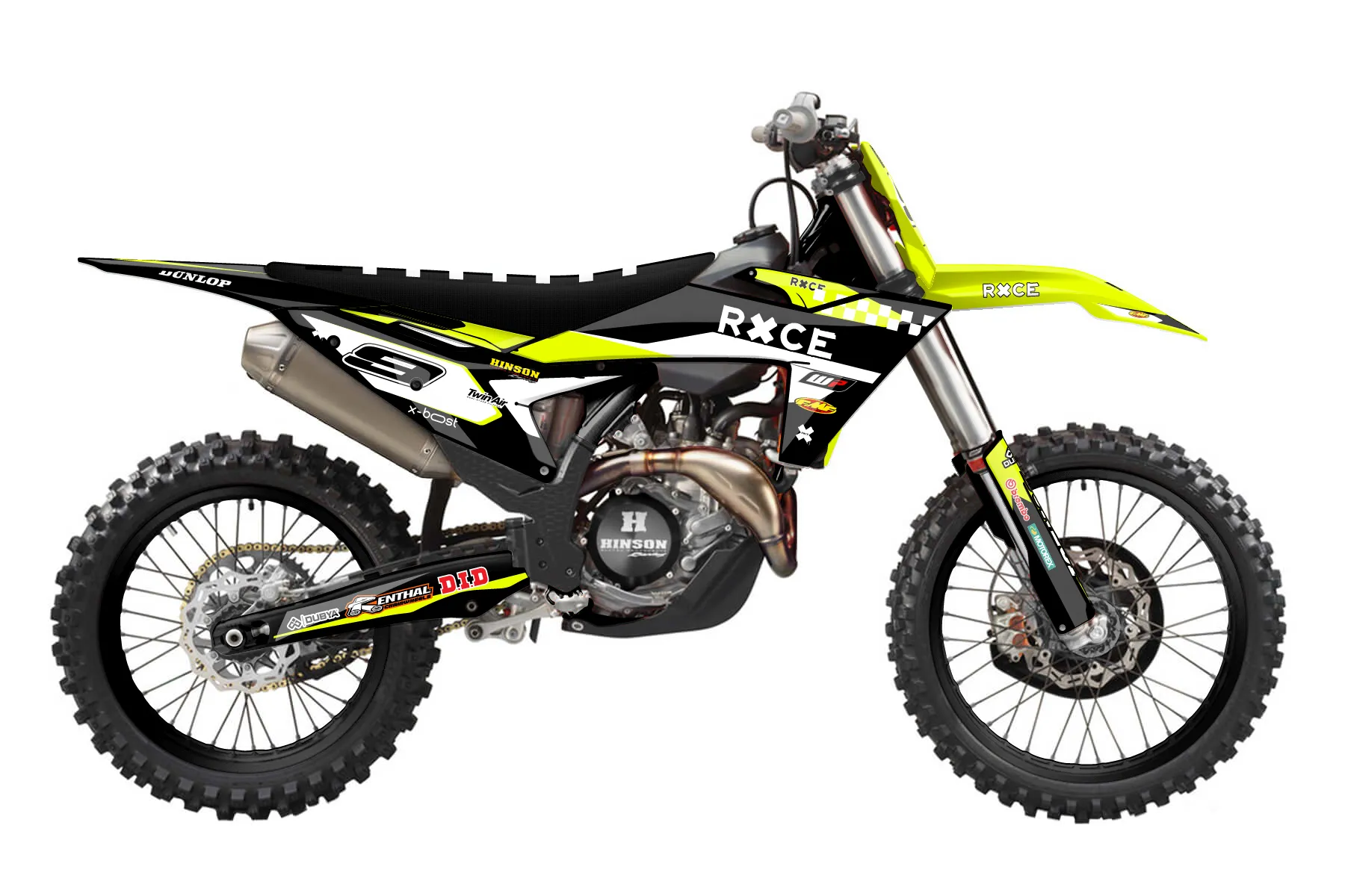 «Lucent Neon» — готовый комплект графики серии Flow для KTM MX Graphic Kit KTM SX-F 450 2022. В комплекте: графика на бак и боковые облицовки, крылья (переднее и заднее), передний щиток, номерные таблички, защита вилки. Материал: ПВХ-винил 80 мкр с холодной ламинацией 300 мкр, общая толщина 380 мкр; покрытие глянцевое или матовое на выбор. Устойчив к UV-излучению, воде, бензину и мойке высокого давления. Клей акриловый на сольвентной основе — постоянный, для гибких пластиков. На простых поверхностях монтируется без нагрева; для сложных изгибов рекомендуем фен. Этот пресет можно заказать как есть или взять за основу в конструкторе: поменять цвета, добавить стартовый номер и свой бренд. Производство — 3–5 рабочих дней, доставка по России СДЭКом или Почтой, по СНГ — курьерскими службами.