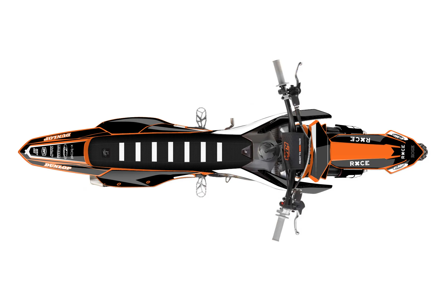 «Race» — готовый комплект графики серии Flow для KTM MX Graphic Kit KTM SX-F 450 2022. В комплекте: графика на бак и боковые облицовки, крылья (переднее и заднее), передний щиток, номерные таблички, защита вилки. Материал: ПВХ-винил 80 мкр с холодной ламинацией 300 мкр, общая толщина 380 мкр; покрытие глянцевое или матовое на выбор. Устойчив к UV-излучению, воде, бензину и мойке высокого давления. Клей акриловый на сольвентной основе — постоянный, для гибких пластиков. На простых поверхностях монтируется без нагрева; для сложных изгибов рекомендуем фен. Этот пресет можно заказать как есть или взять за основу в конструкторе: поменять цвета, добавить стартовый номер и свой бренд. Производство — 3–5 рабочих дней, доставка по России СДЭКом или Почтой, по СНГ — курьерскими службами.