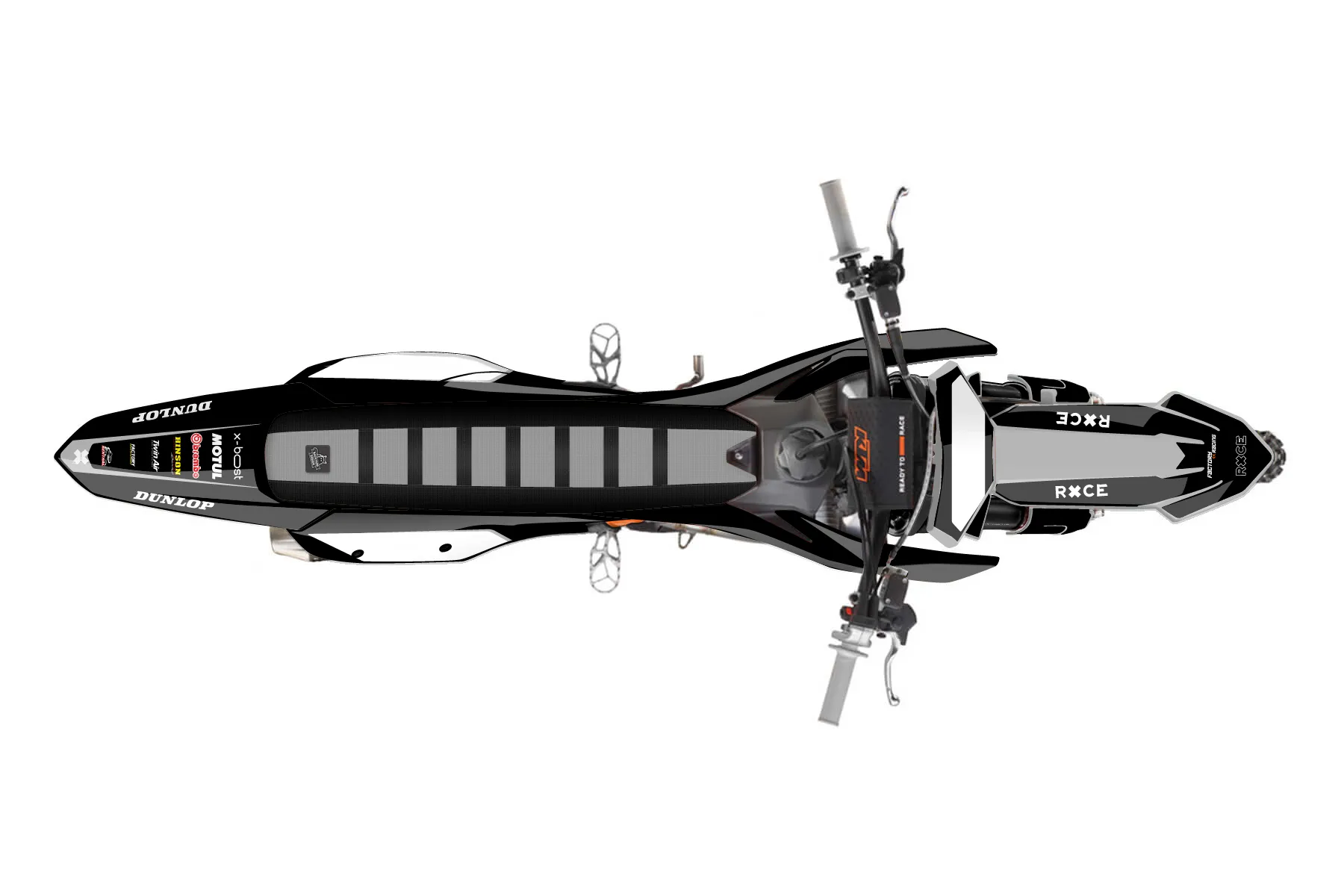 «Transworld» — готовый комплект графики серии Flow для KTM MX Graphic Kit KTM SX-F 450 2022. В комплекте: графика на бак и боковые облицовки, крылья (переднее и заднее), передний щиток, номерные таблички, защита вилки. Материал: ПВХ-винил 80 мкр с холодной ламинацией 300 мкр, общая толщина 380 мкр; покрытие глянцевое или матовое на выбор. Устойчив к UV-излучению, воде, бензину и мойке высокого давления. Клей акриловый на сольвентной основе — постоянный, для гибких пластиков. На простых поверхностях монтируется без нагрева; для сложных изгибов рекомендуем фен. Этот пресет можно заказать как есть или взять за основу в конструкторе: поменять цвета, добавить стартовый номер и свой бренд. Производство — 3–5 рабочих дней, доставка по России СДЭКом или Почтой, по СНГ — курьерскими службами.