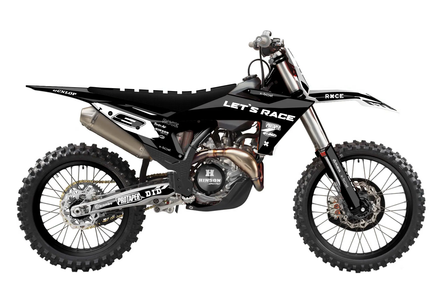 «DeCore» — готовый комплект графики серии Maverick для KTM MX Graphic Kit KTM SX-F 450 2022. В комплекте: графика на бак и боковые облицовки, крылья (переднее и заднее), передний щиток, номерные таблички, защита вилки. Материал: ПВХ-винил 80 мкр с холодной ламинацией 300 мкр, общая толщина 380 мкр; покрытие глянцевое или матовое на выбор. Устойчив к UV-излучению, воде, бензину и мойке высокого давления. Клей акриловый на сольвентной основе — постоянный, для гибких пластиков. На простых поверхностях монтируется без нагрева; для сложных изгибов рекомендуем фен. Этот пресет можно заказать как есть или взять за основу в конструкторе: поменять цвета, добавить стартовый номер и свой бренд. Производство — 3–5 рабочих дней, доставка по России СДЭКом или Почтой, по СНГ — курьерскими службами.