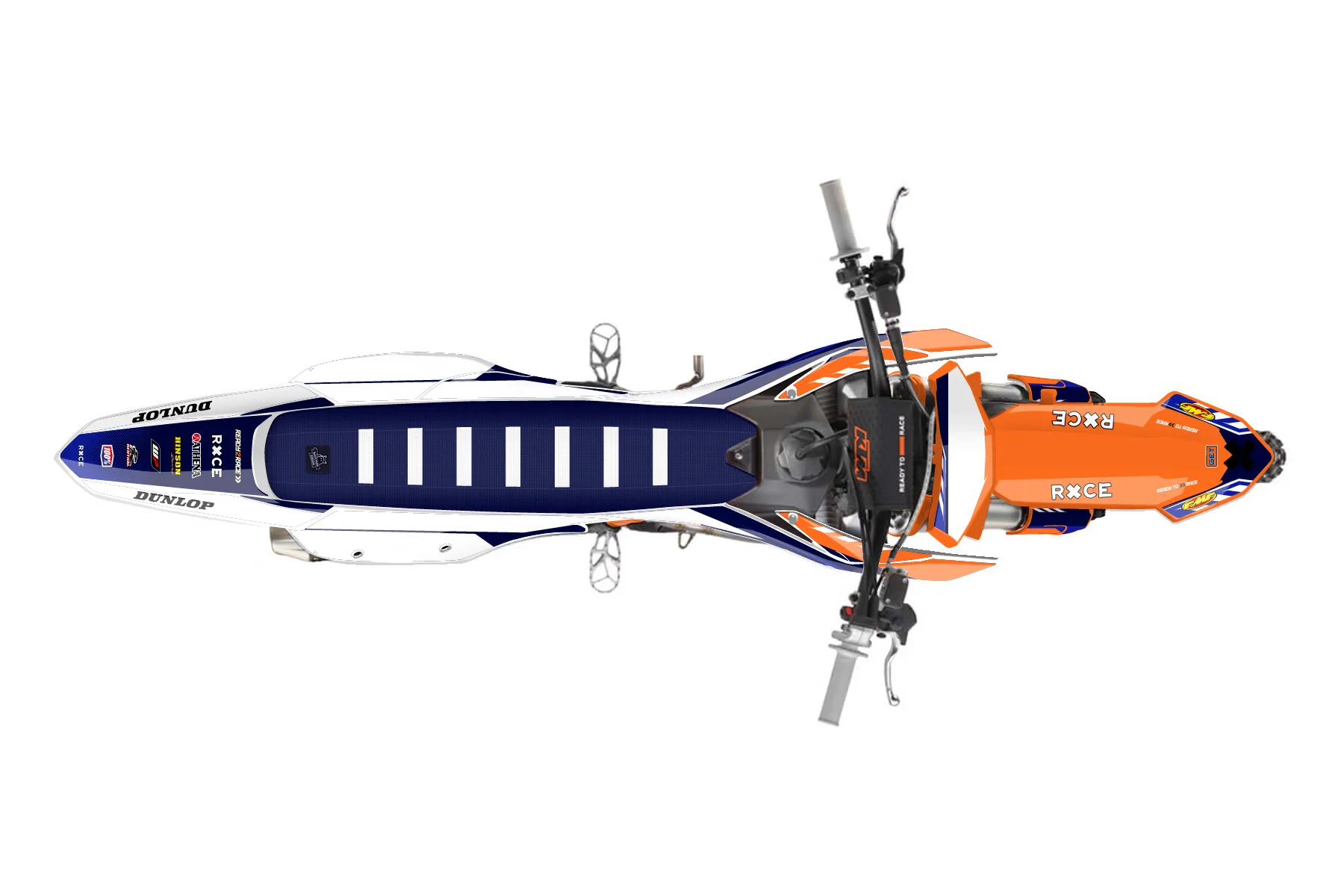 «Fuzion» — готовый комплект графики серии Maverick для KTM MX Graphic Kit KTM SX-F 450 2022. В комплекте: графика на бак и боковые облицовки, крылья (переднее и заднее), передний щиток, номерные таблички, защита вилки. Материал: ПВХ-винил 80 мкр с холодной ламинацией 300 мкр, общая толщина 380 мкр; покрытие глянцевое или матовое на выбор. Устойчив к UV-излучению, воде, бензину и мойке высокого давления. Клей акриловый на сольвентной основе — постоянный, для гибких пластиков. На простых поверхностях монтируется без нагрева; для сложных изгибов рекомендуем фен. Этот пресет можно заказать как есть или взять за основу в конструкторе: поменять цвета, добавить стартовый номер и свой бренд. Производство — 3–5 рабочих дней, доставка по России СДЭКом или Почтой, по СНГ — курьерскими службами.